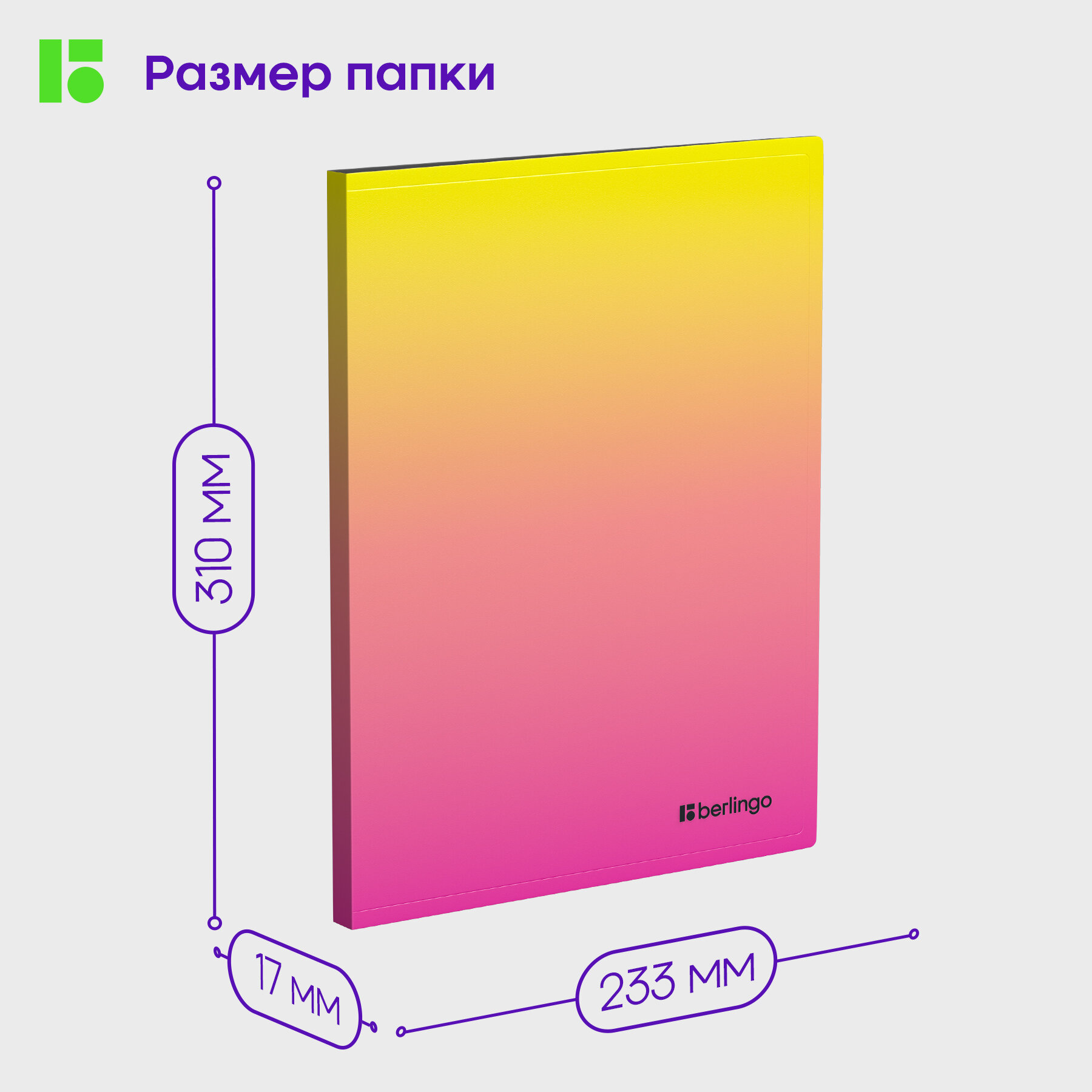 СохранитьПапка с 30 вкладышами Berlingo "Radiance", 17 мм, 600 мкм, с внутр. карманом, желтый/розовый градиент интересное:
