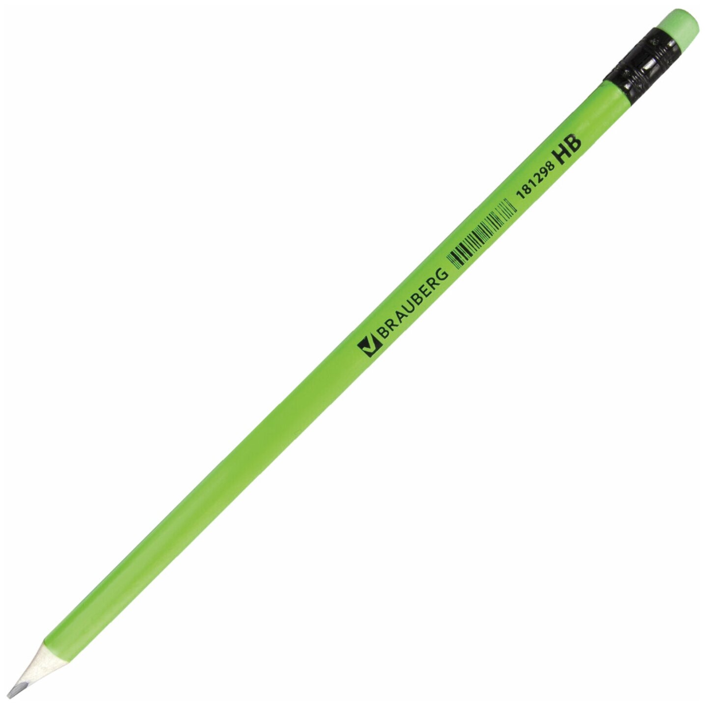 Карандаш чернографитный (простой) Brauberg Neon (HB, цветной ластик, трехгранный, заточенный) 12шт. (181298)