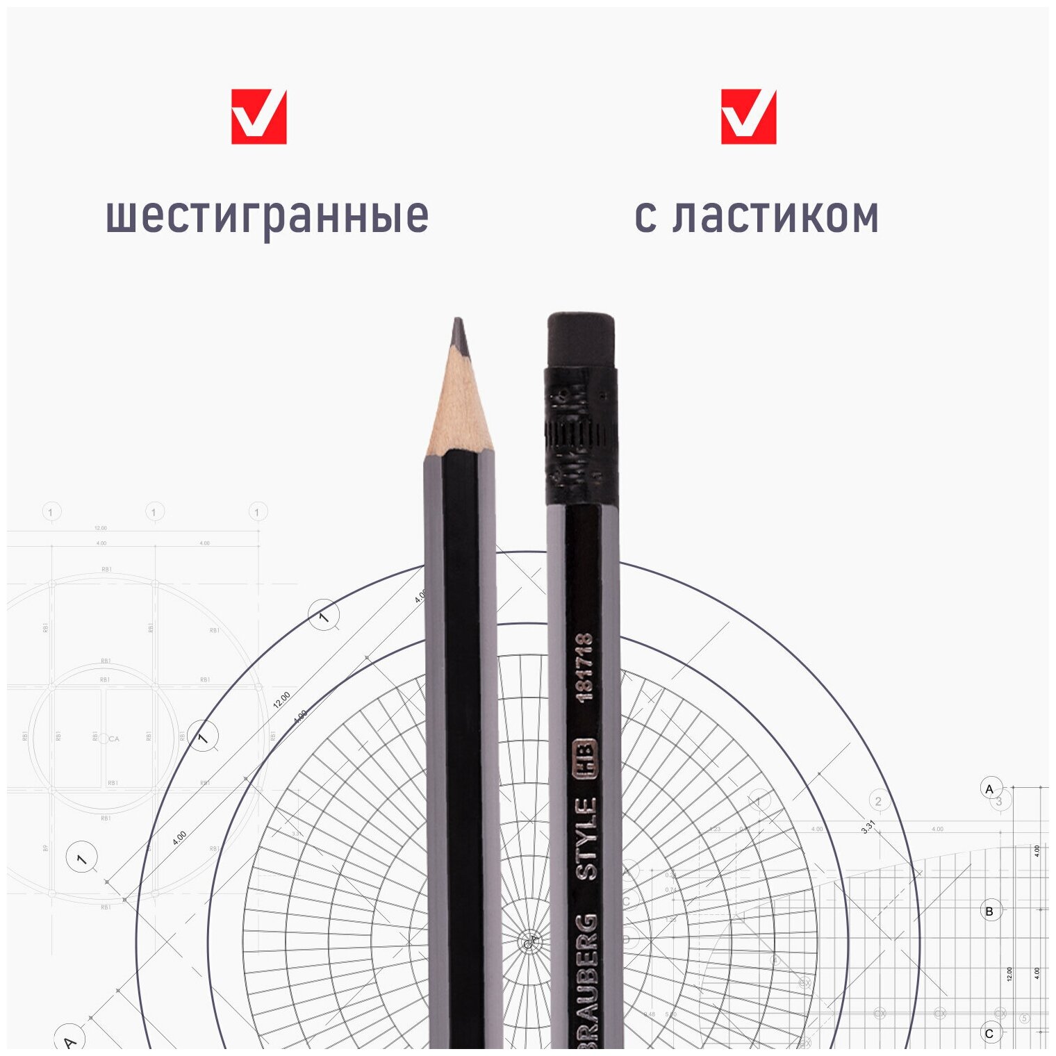 Набор карандашей чернографитных BRAUBERG "Style" 4 шт., HB, с ластиком, корпус черно-серый, 181718 интересное: