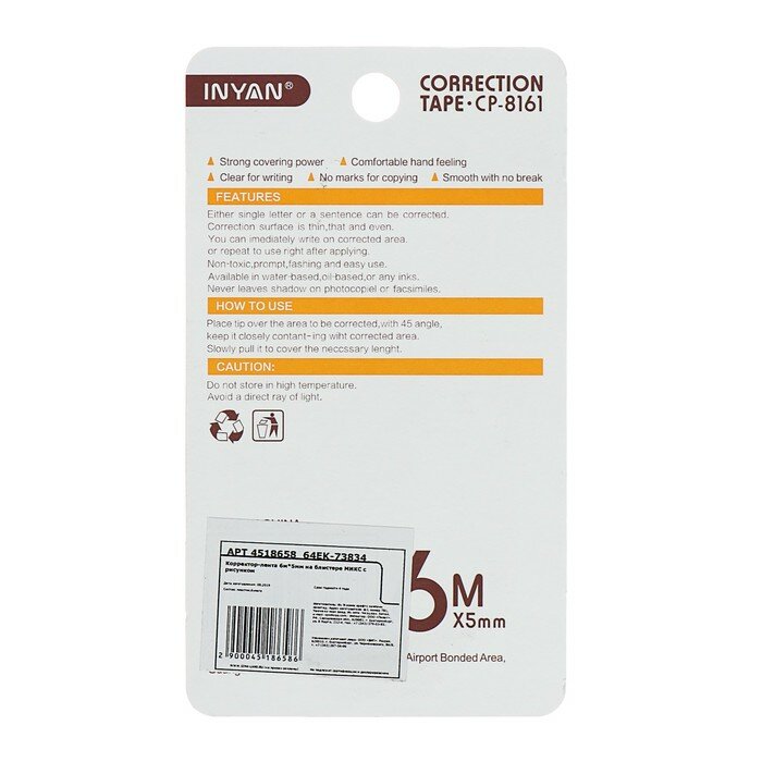 Корректор-лента 6 м х 5 мм, с рисунком, на блистере, микс интересное: