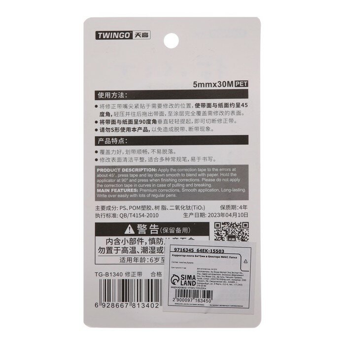 Корректор-лента 6м х 5мм "Лапка", в блистере, микс интересное: