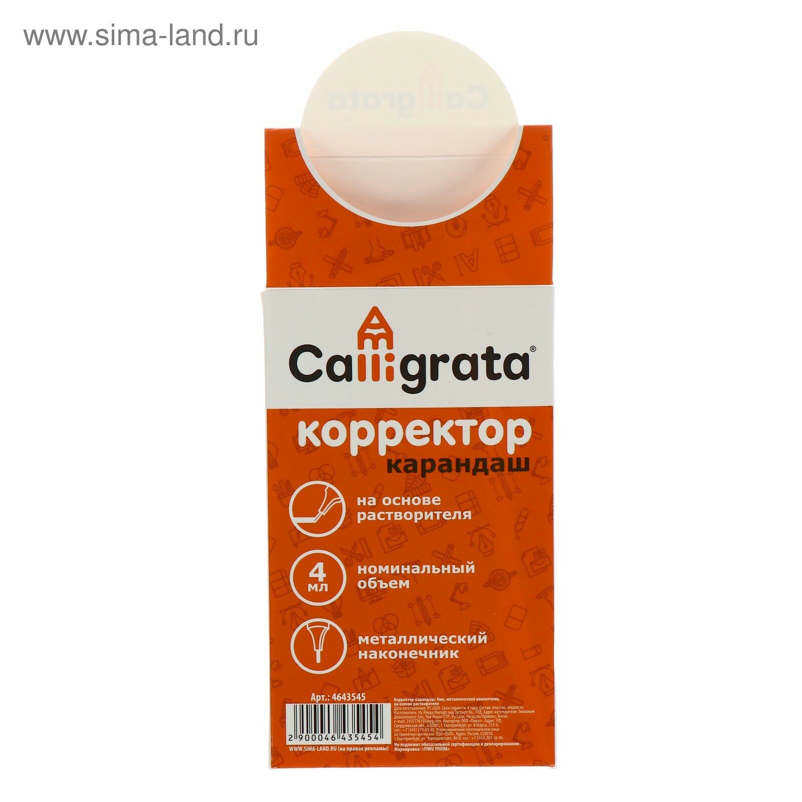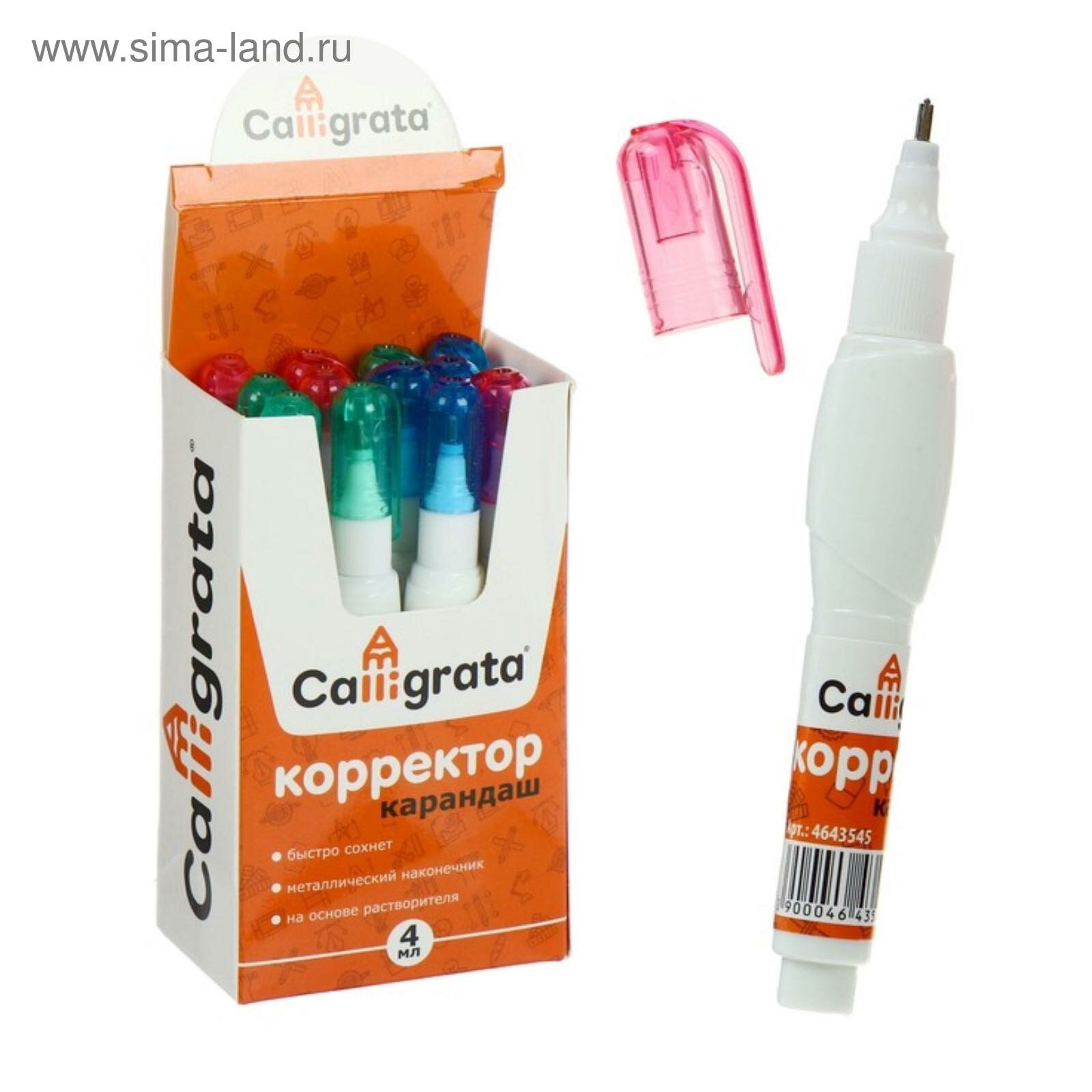 Корректор-карандаш 4 мл., металлический наконечник, на основе растворителя (12шт.) интересное: