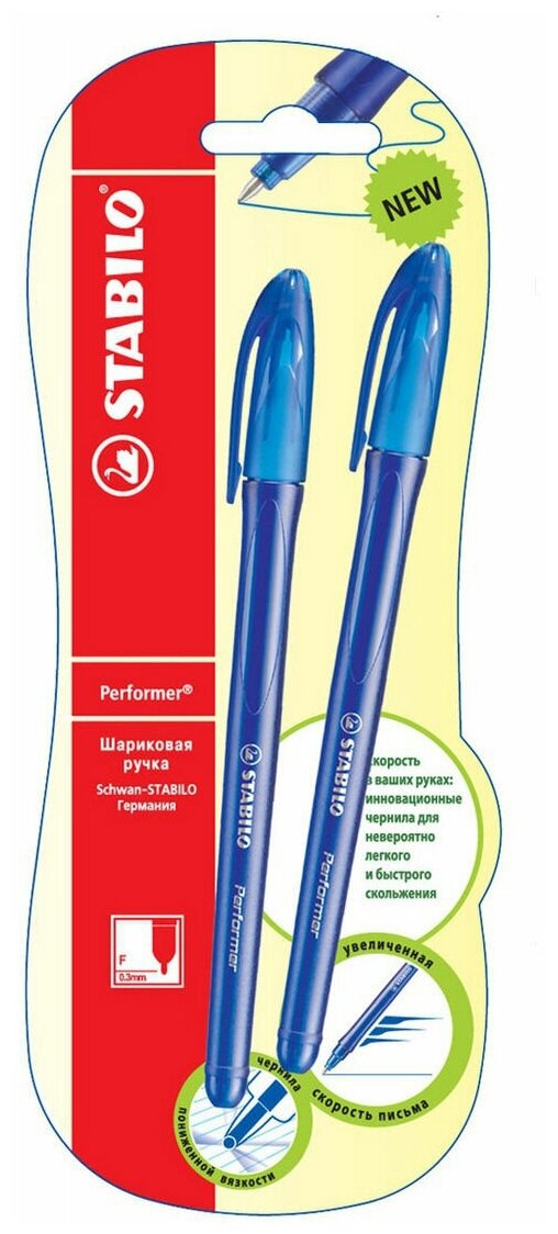 Ручка шариковая STABILO PERFORMER 898, 2шт/уп, цвет чернил синий интересное: