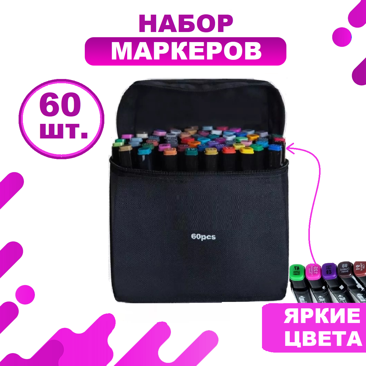 Купить Маркеры для скетчинга 60 штук (цветов) (набор профессиональных двухсторонних фломастеров для скетчинга в чехле)