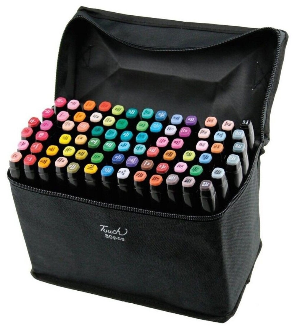 Маркеры для скетчинга 80 штук (цветов) (набор профессиональных двухсторонних фломастеров для скетчинга в чехле) интересное: