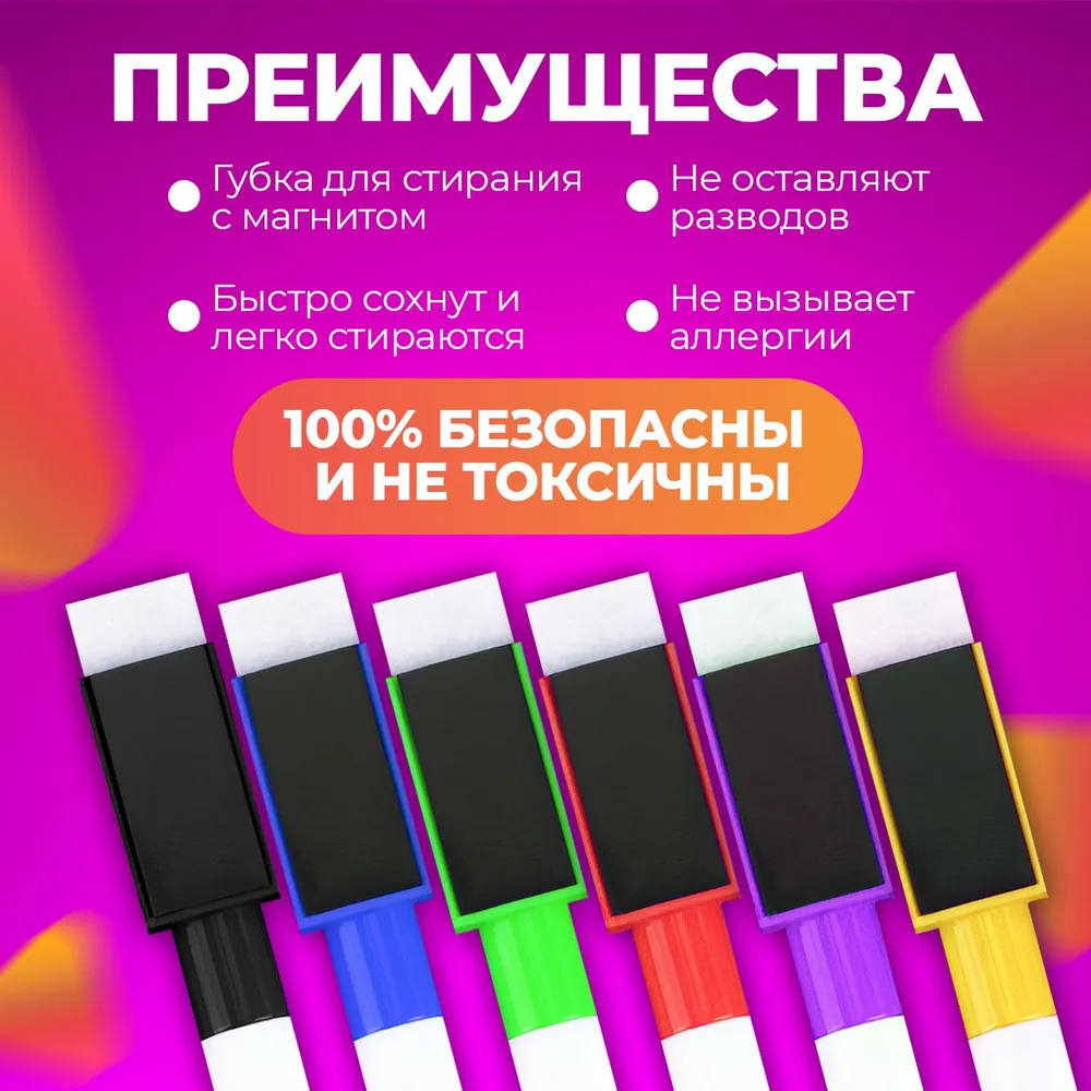 Ниже Вы можете прочитать отзывы на Маркер пиши-стирай, цветной, на водной основе, с магнитом, набор из 6 штук, ознакомится с подробными характеристиками, посмотреть интересные обзоры и фотографии на Маркер пиши-стирай, цветной, на водной основе, с магнитом, набор из 6 штук.