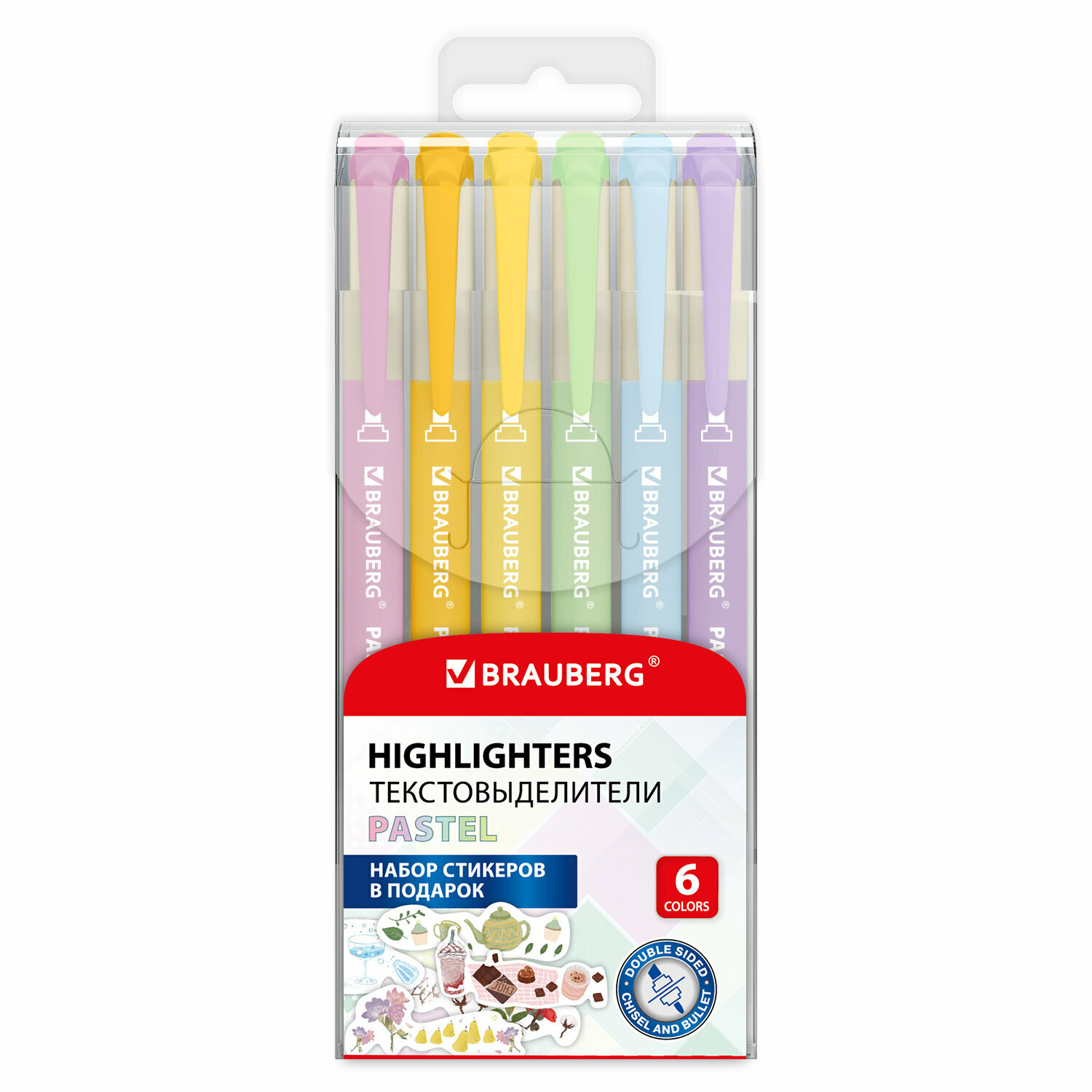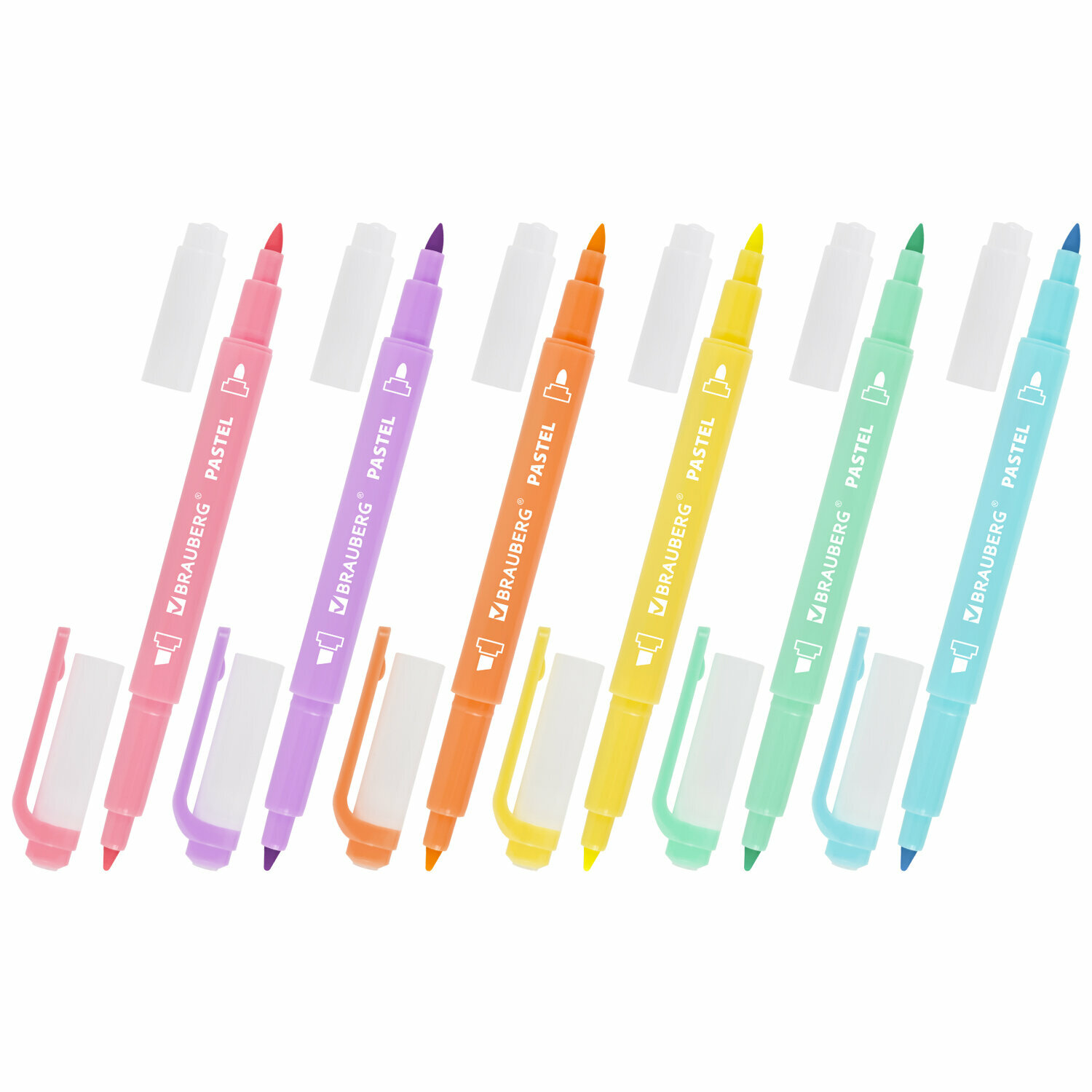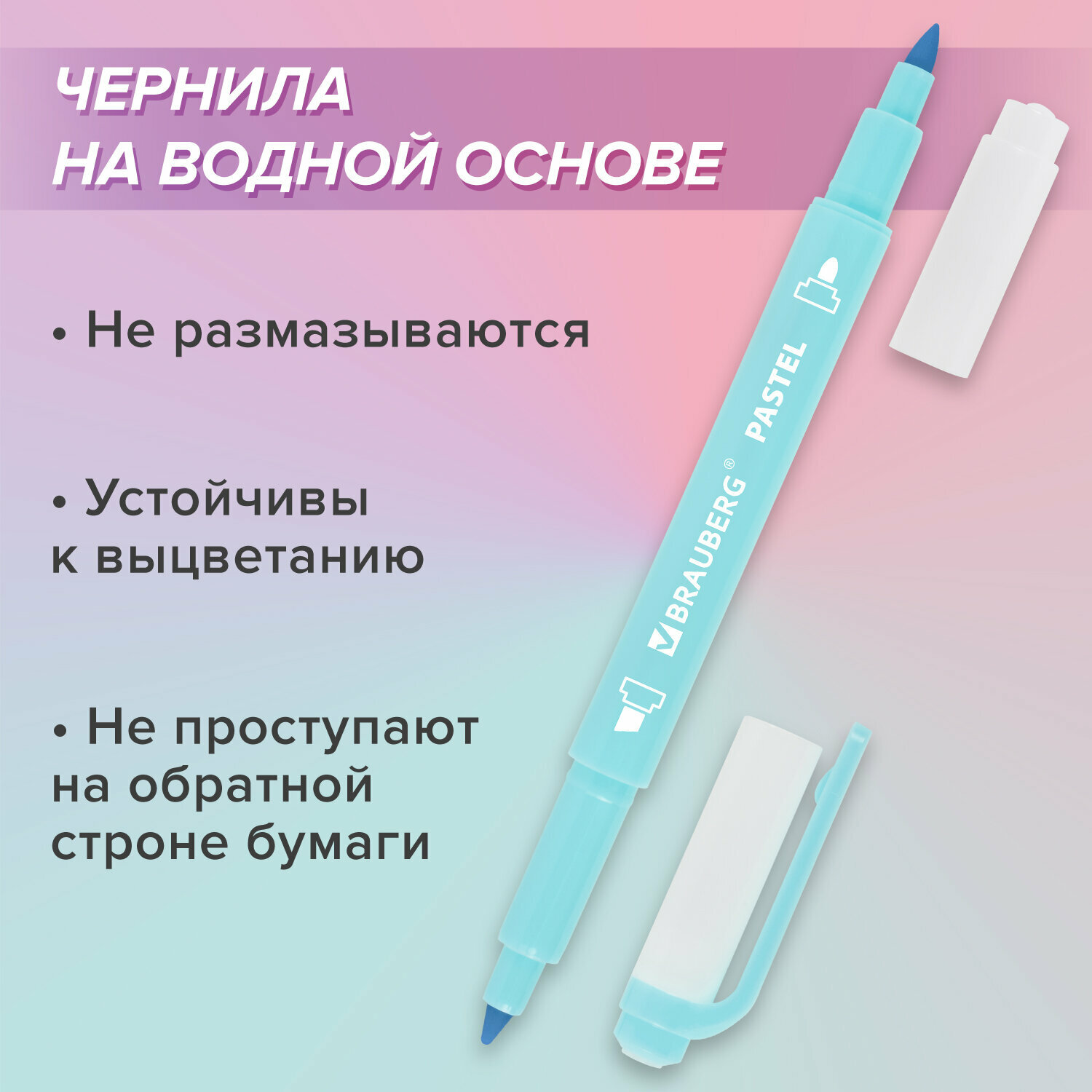 Текстовыделители пастельные набор 6 цв двухсторонние, маркеры для рисования, скетчинга и выделения текста, линия 1-5 мм, Brauberg Twin Pastel, 152518 интересное: