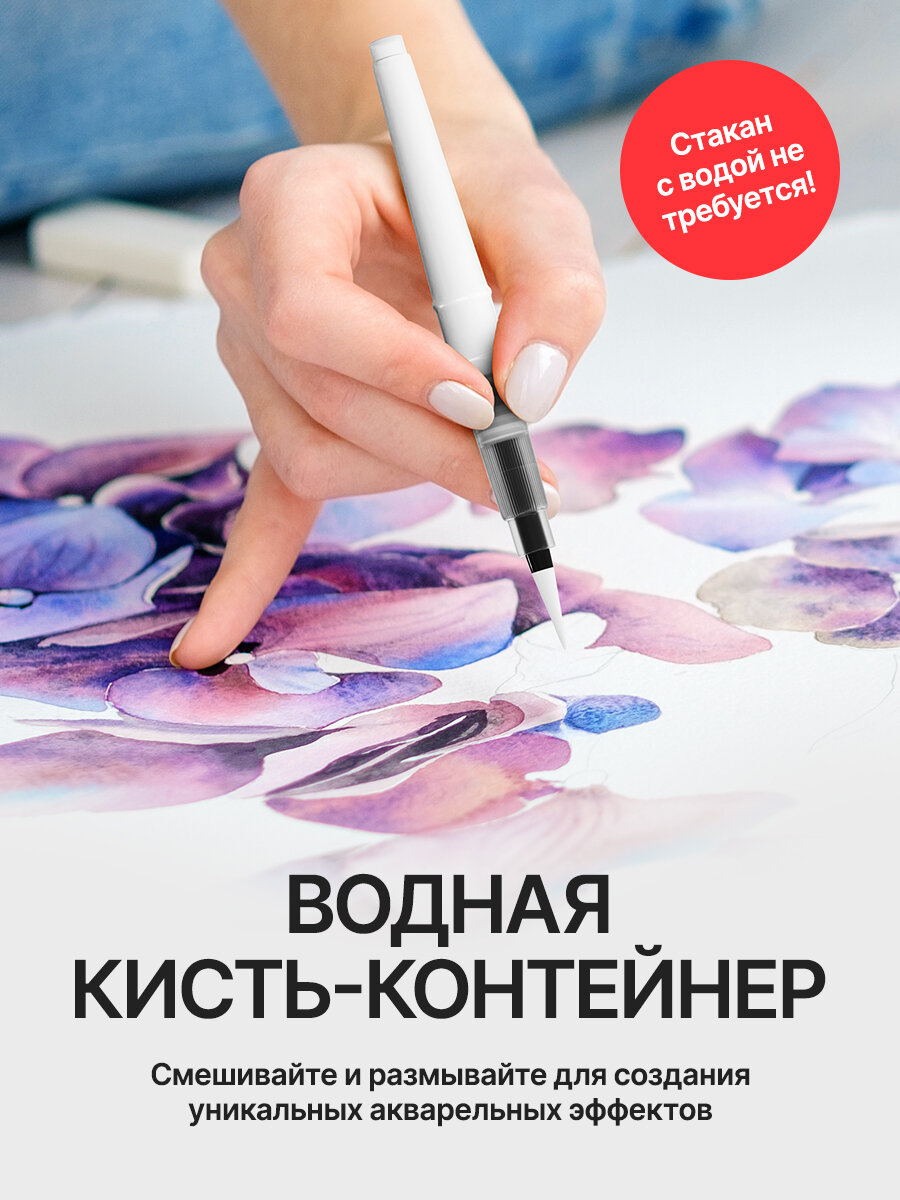 | Дополнительная информация | В наборе маркеры, аквабраш с резервуаром для воды и альбом акварельной бумаги. |