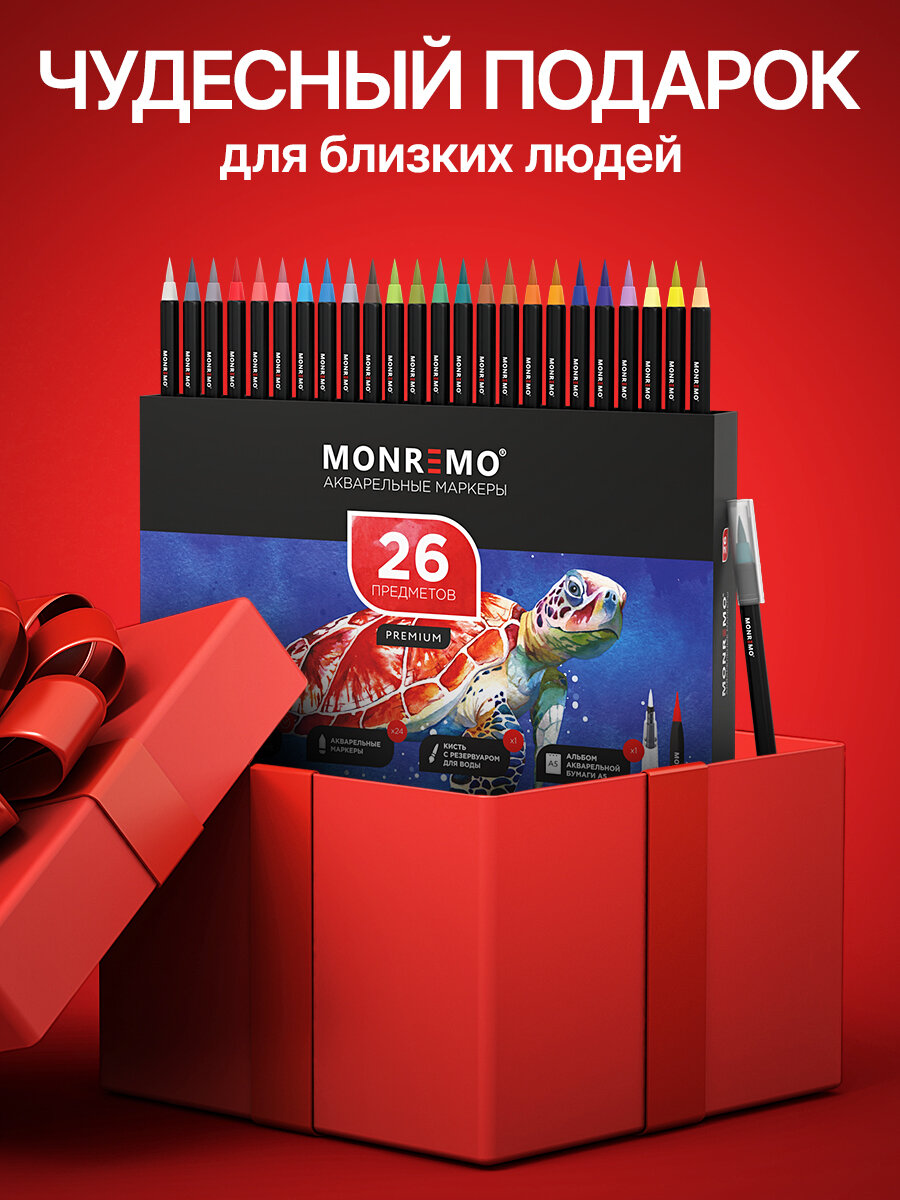Купить Набор цветных акварельных маркеров для рисования + альбом MONREMO