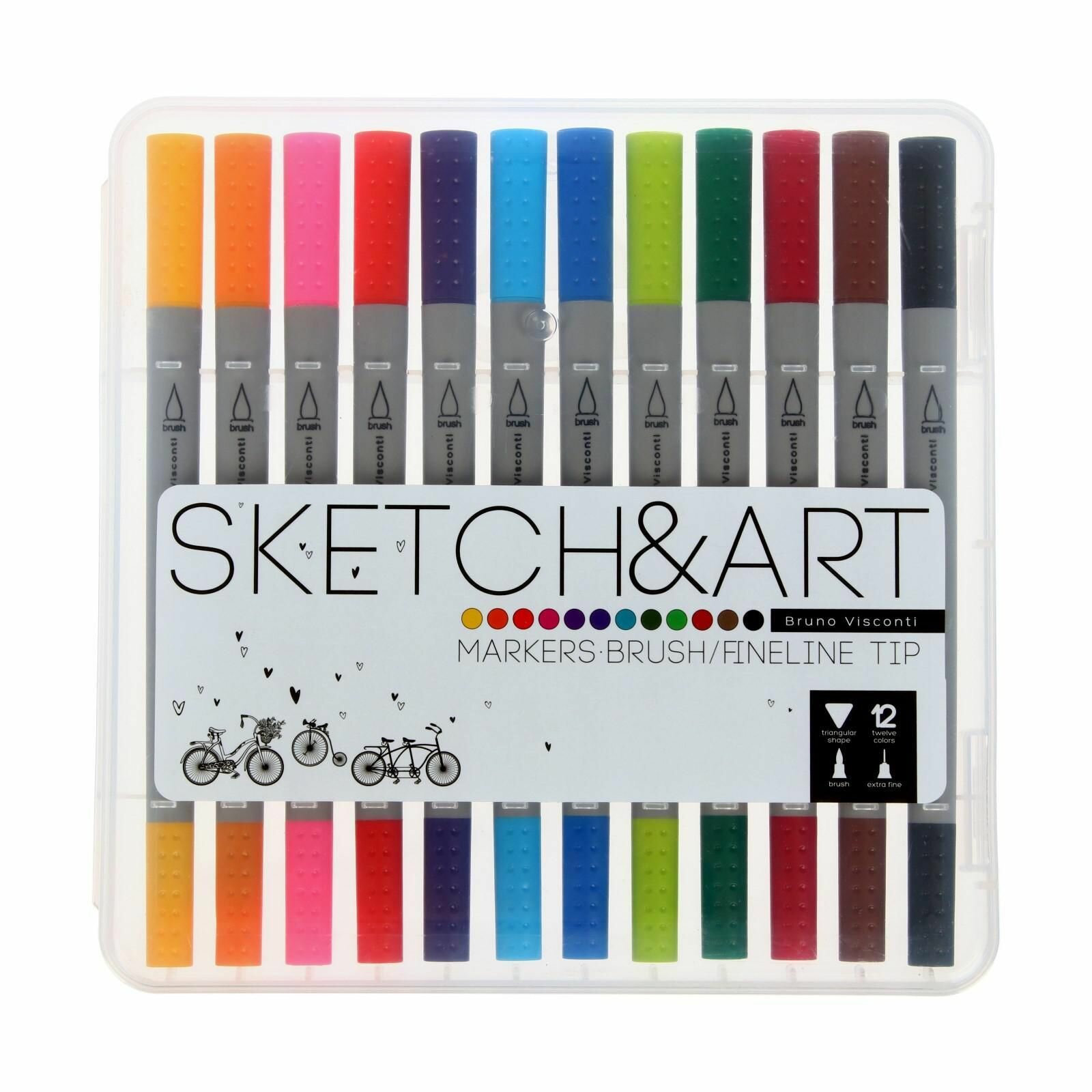 Набор маркеров для скетчинга Bruno Visconti "SKETCH&ART" двухсторонние ( кисточка и линер ), 12 цветов арт.22-0082
