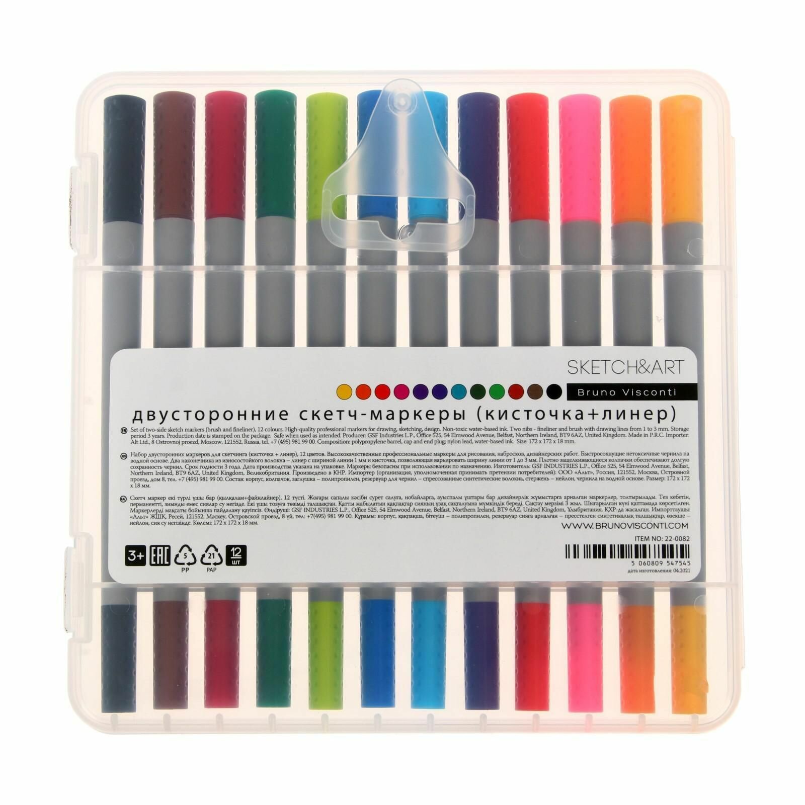 Набор маркеров для скетчинга Sketch&Art двухсторонние, кисточка и линер, 12 цветов (22-0082)