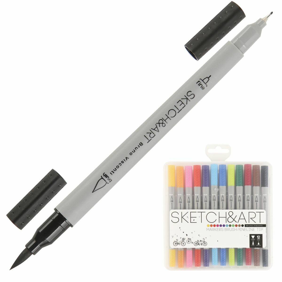Набор двусторонних скетч-маркеров Bruno Visconti "SKETCH&ART" (Кисточка + Линер) 12 цветов