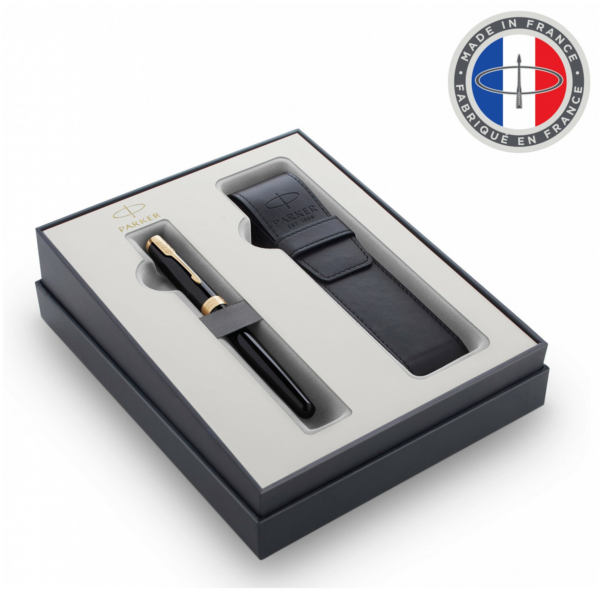Купить Подарочный набор Parker 2020: перьевая ручка Sonnet Black Lacquer GT + чехол для ручки перо M (2121710)