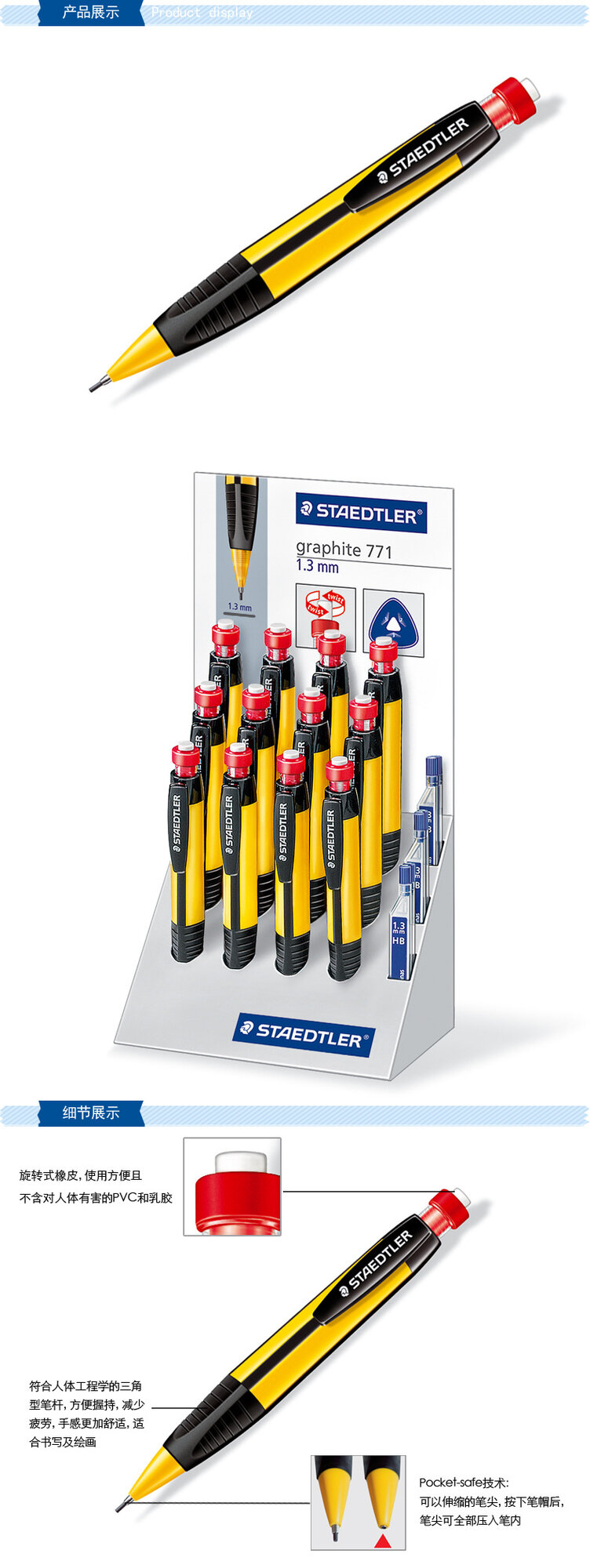 Механический карандаш STAEDTLER 771, желто-черный, с защитой от взлома интересное: