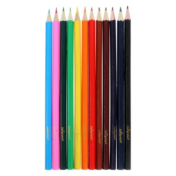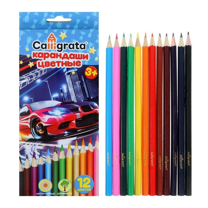 Купить Карандаши цветные 12 цветов, "Машинка", корпус деревянный, шестигранный
