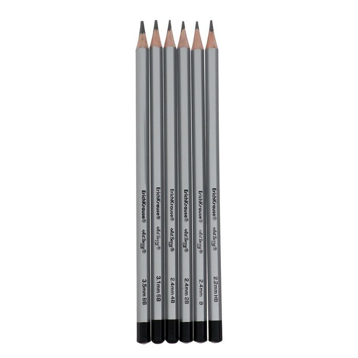Купить Набор карандашей чернографитных различной твердости 6 штук, ErichKrause, грифель d=2.2 мм, шестигранные, ударопрочные, серебро, в коробке