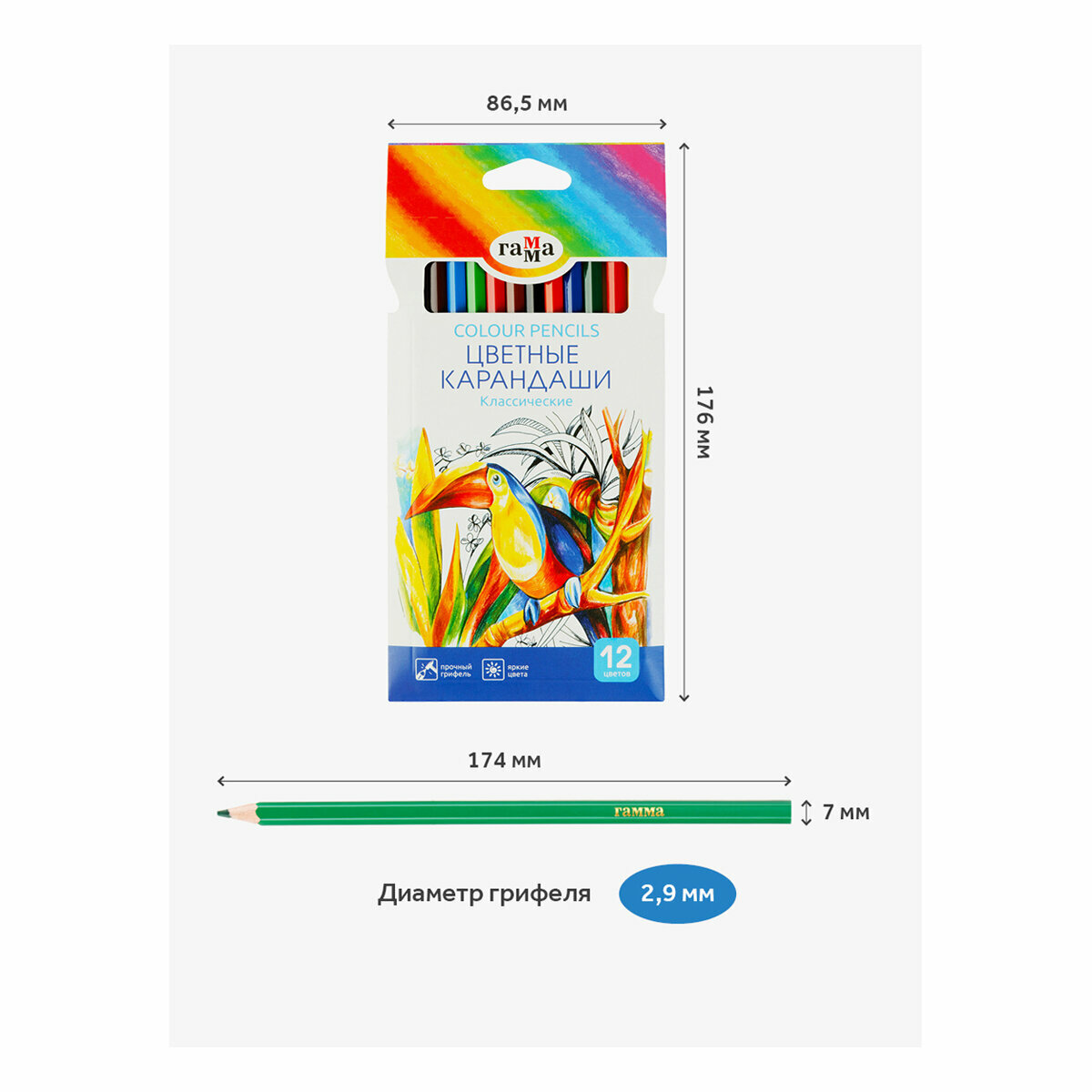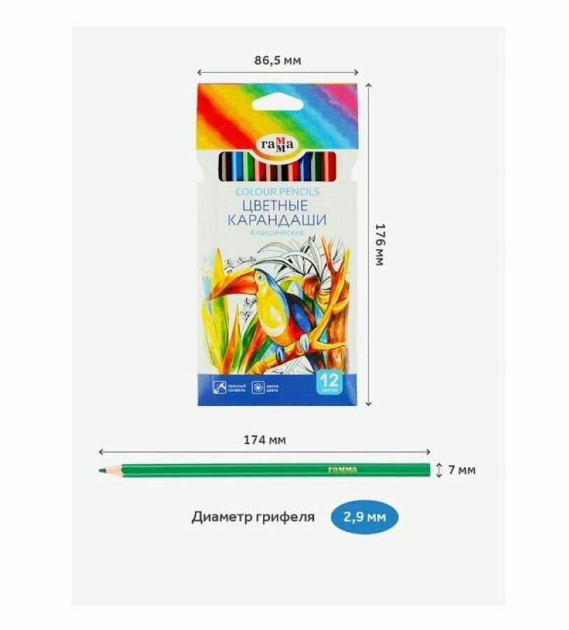 Карандаши 12 цветов "Гамма" "Классические", стержень d=2.6 мм, шестигранные интересное:
