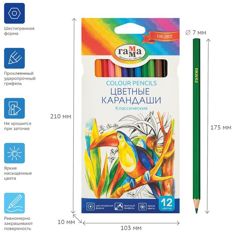 Купить Карандаши 12 цветов "Гамма" "Классические", стержень d=2.6 мм, шестигранные