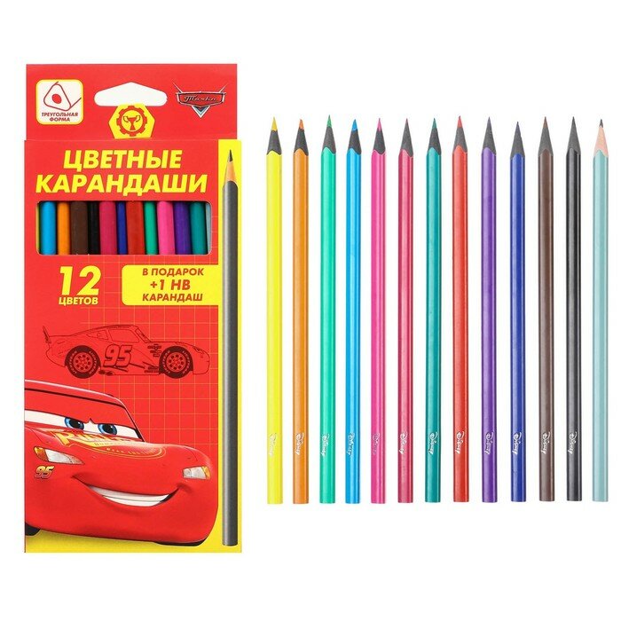 Купить Цветные карандаши, 12 цветов, трехгранные, Тачки