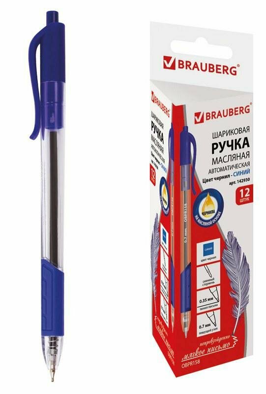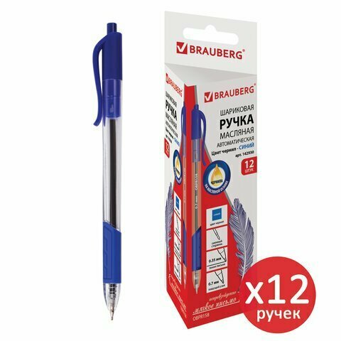 Ручка шариковая масляная автомат. BRAUBERG Extra Glide R-Grip, комплект 12 шт, синяя, 0,7мм, 880197 интересное: