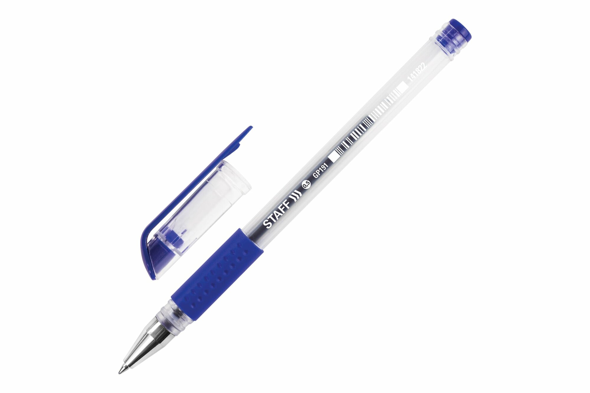 Ручка гелевая с грипом Staff Everyday Gp-191, Комплект 12 шт., Синяя, узел 0,5 мм, линия письма 0,35 мм, 880215