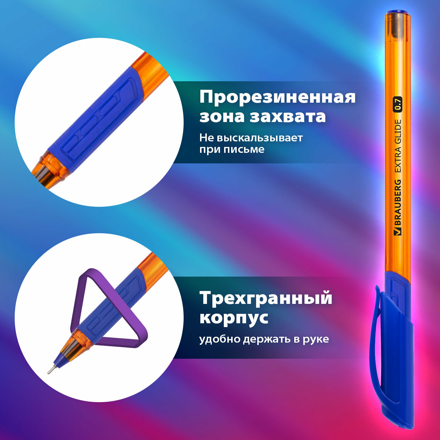 Ручка шариковая масляная с грипом BRAUBERG "Extra Glide GT", синяя, трехгранная, узел 0,7 мм, линия письма 0,35 мм, 142681, в комплекте 12шт