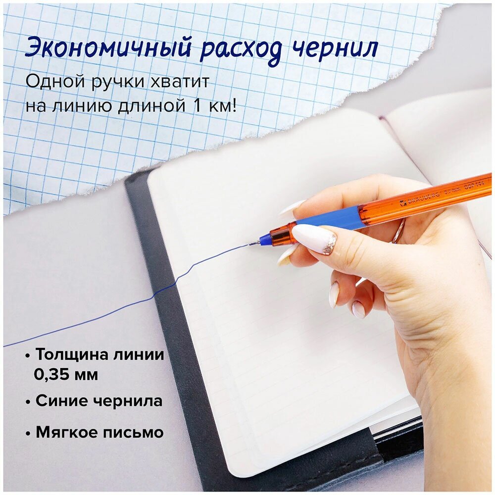 Ручка шариковая Brauberg Extra Glide Orange (0.35мм, масляная основа, синий цвет чернил, трехгранная) 12шт. (OBP149)