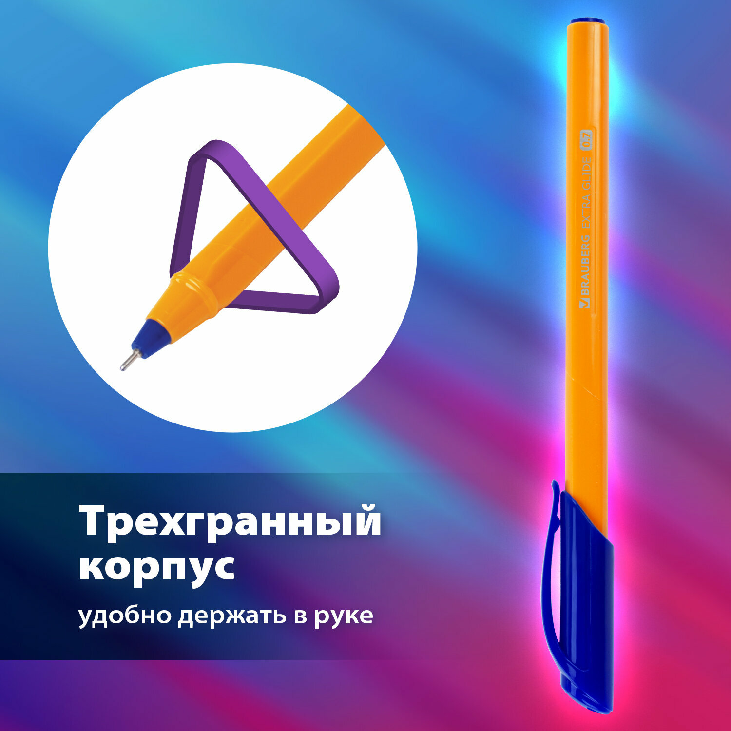 Купить Ручка шариковая Brauberg Extra Glide Orange (0.35мм, масляная основа, синий цвет чернил, трехгранная) 12шт. (OBP149)