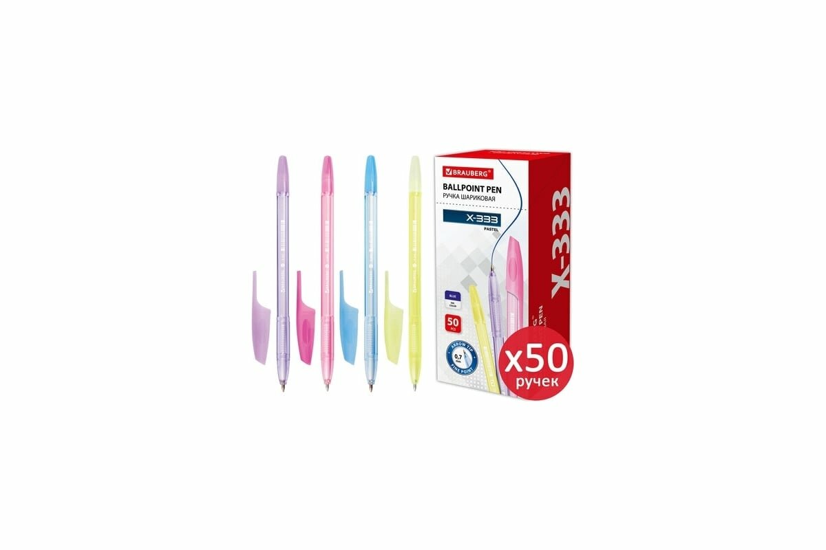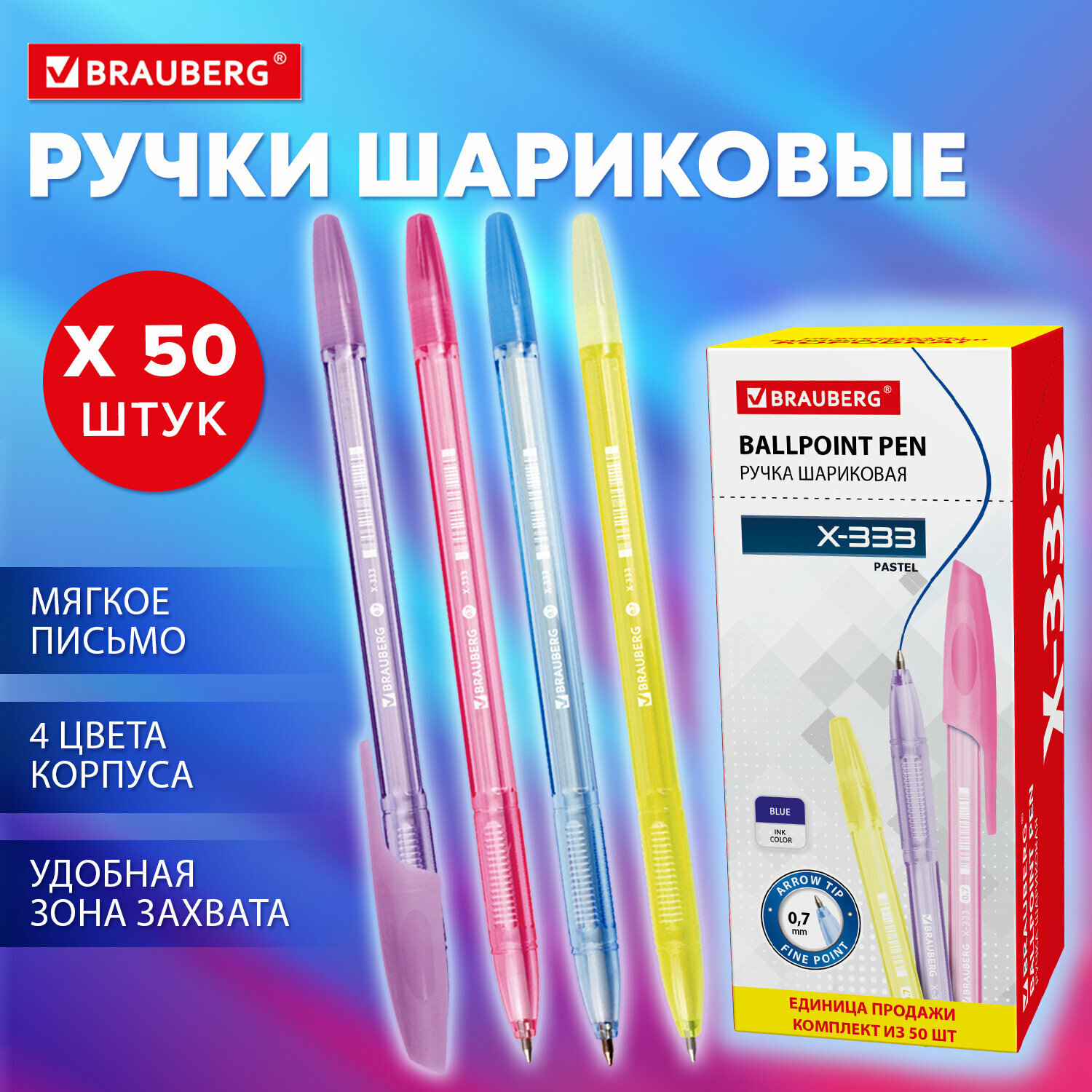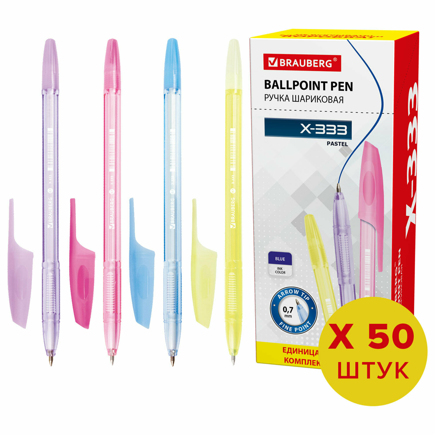 Купить BRAUBERG Ручка шариковая x-333 pastel, синяя, выгодный комплект 50 шт., корпус ассорти, 0,35 мм, 880410