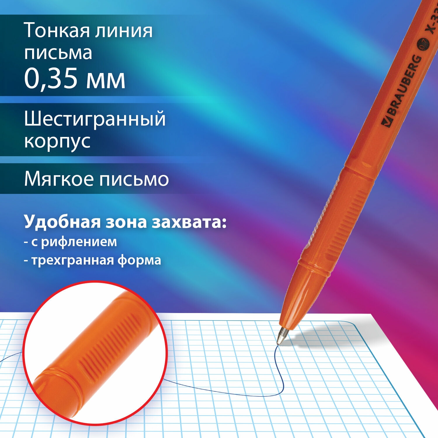 Ручка шариковая BRAUBERG X-333 Orange, комплект 50 штук, синяя, узел 0,7мм, линия 0,35мм, 880006