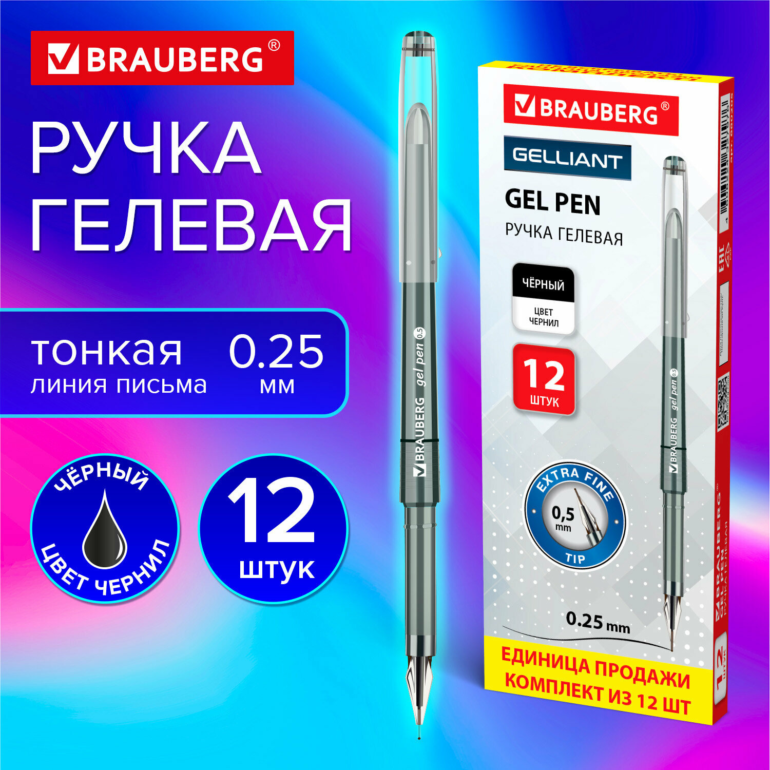 Ручка гелевая BRAUBERG DIAMOND, комплект 12 штук, черная, узел 0,5 мм, линия письма 0,25 мм, 880205