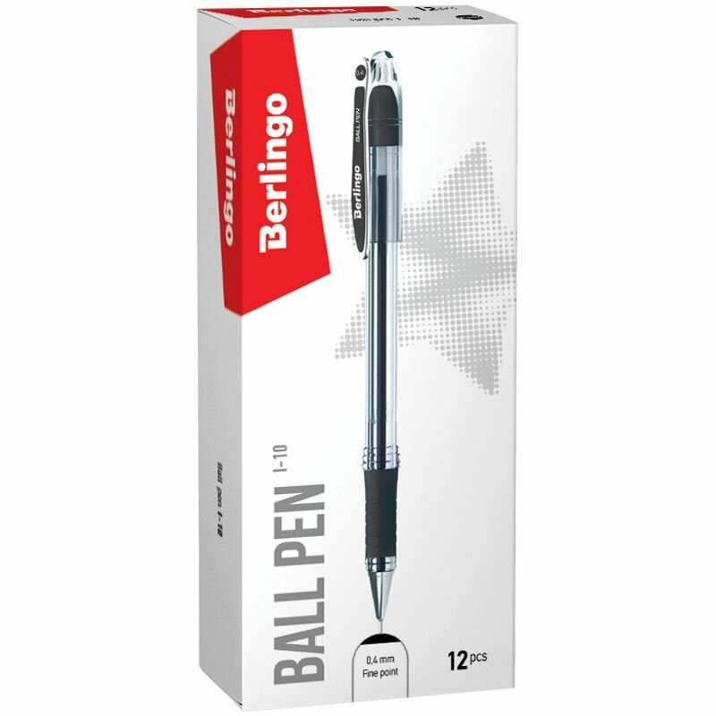 Ручка шариковая Berlingo "I-10" черная, 0,4мм, упаковка 12 шт.