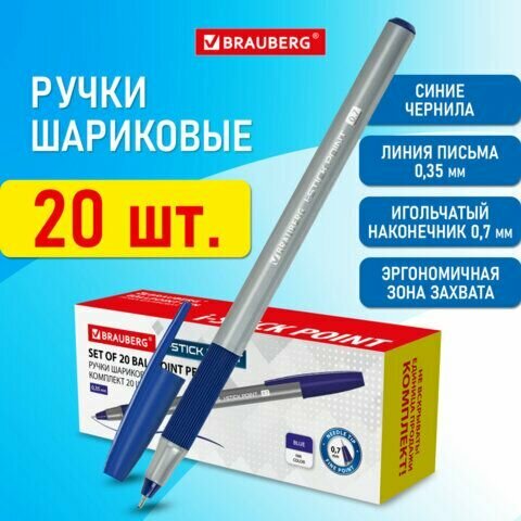 Ручка шариковая с грипом BRAUBERG "i-STICK POINT", комплект 20 шт., синяя, линия письма 0,35 мм, 144024 интересное:
