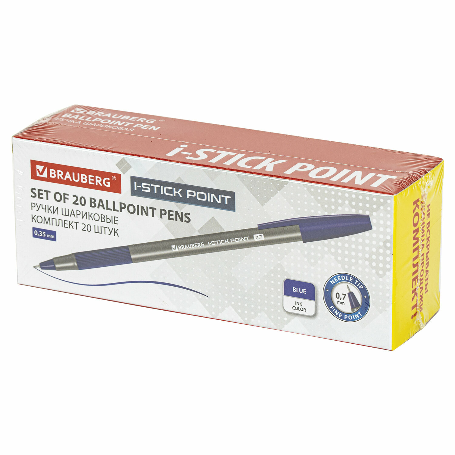 Купить Ручка шариковая с грипом BRAUBERG "i-STICK POINT", комплект 20 шт., синяя, линия письма 0,35 мм, 144024