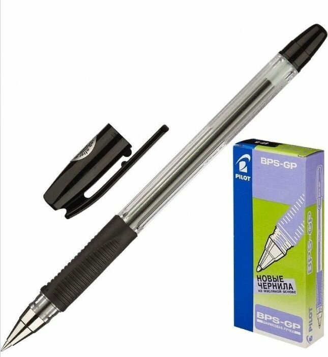 Набор 12 шт. - Ручка шариковая Pilot "BPS" черная, 1,0 мм, с грипом BPS-GP-M-B