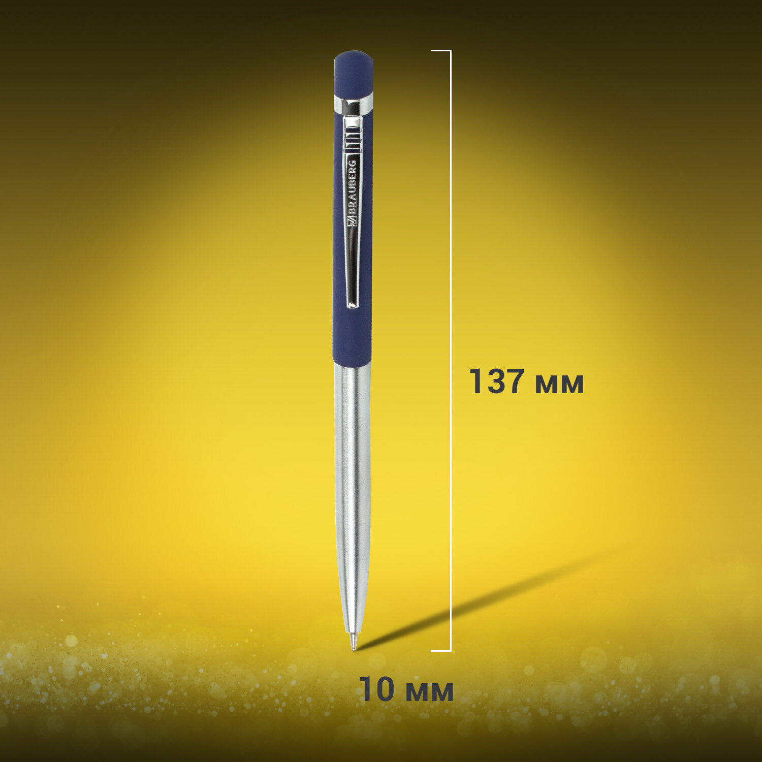 Ручка шариковая подарочная мужчине и женщине Brauberg Brioso, Синяя, корпус серебристый с золотистыми деталями, линия письма 0,5 мм, 143463