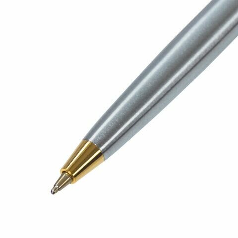 Ручка шариковая подарочная мужчине и женщине Brauberg Maestro, Синяя, корпус серебристый с золотистым, линия письма 0,5 мм, 143468