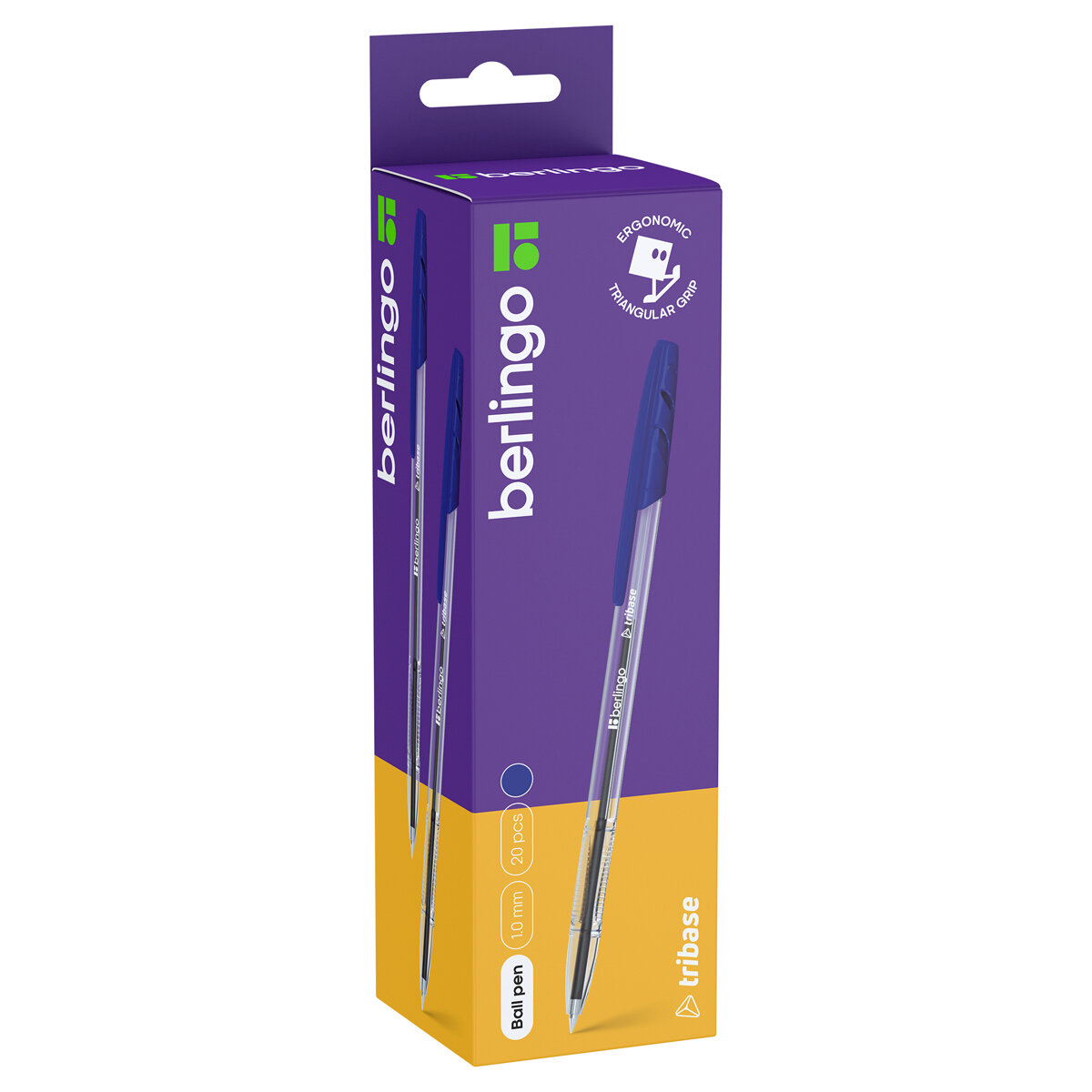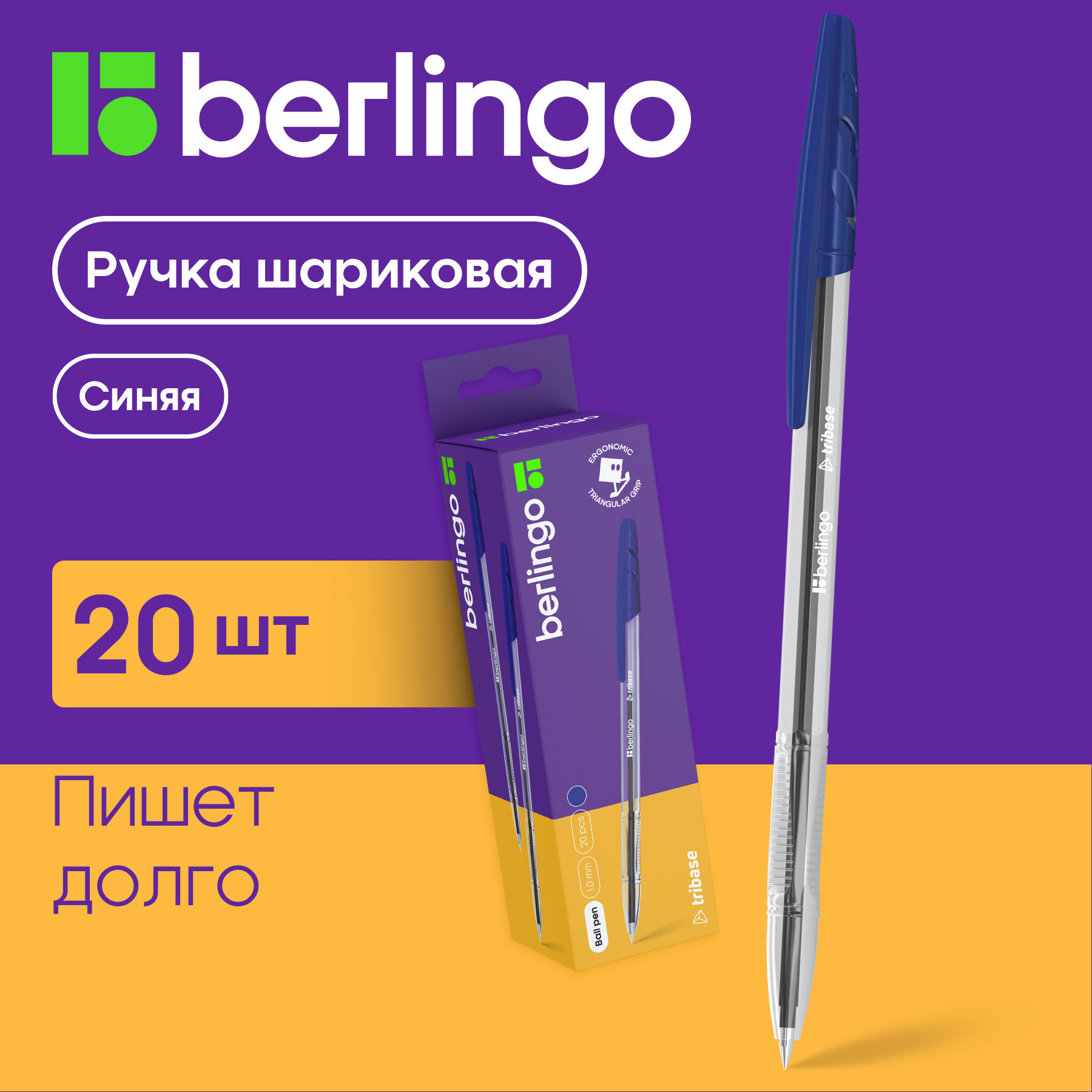 Купить Ручки шариковые синие набор для школы 20 штук/ комплект Berlingo "Tribase" /линия письма 1 мм, smart ink (легкое, мягкое касание бумаги)