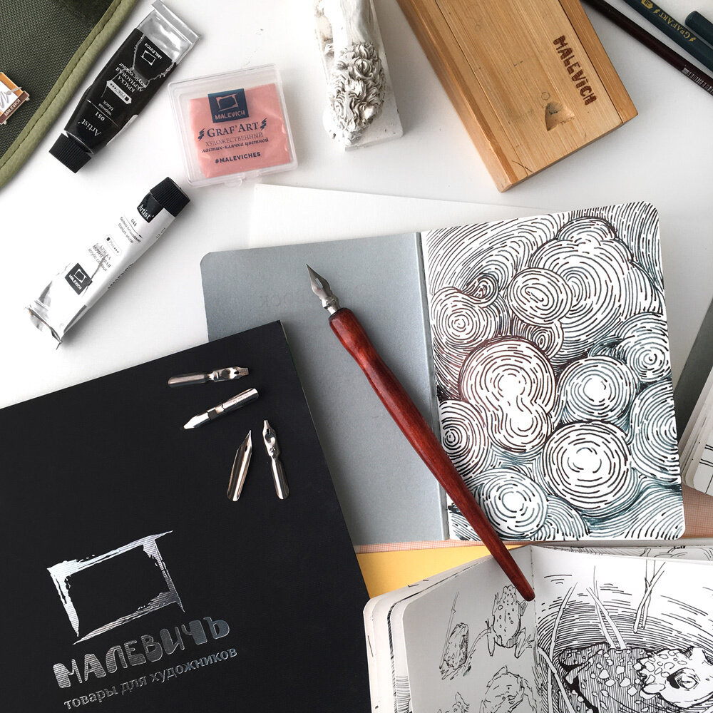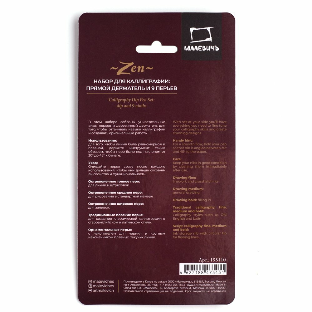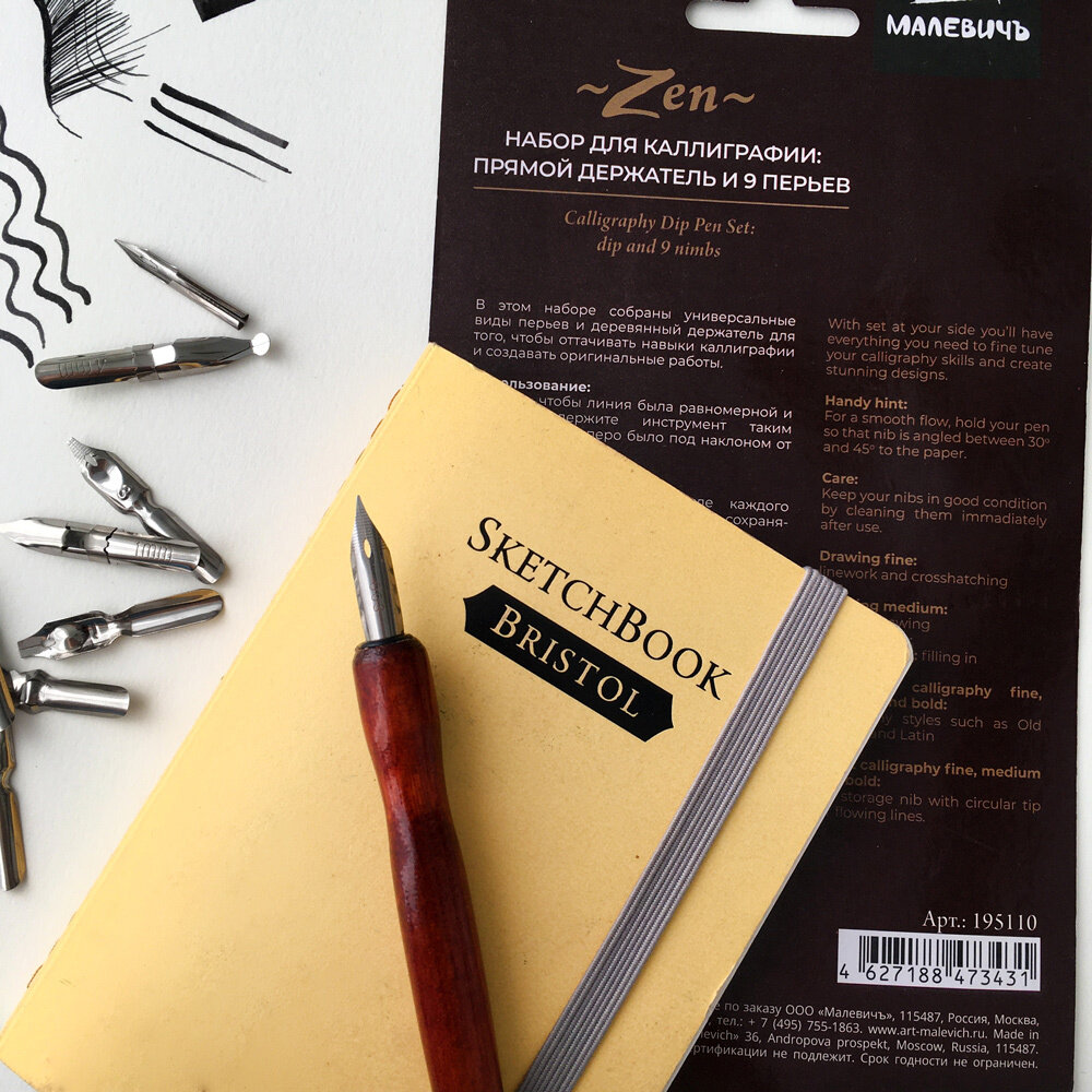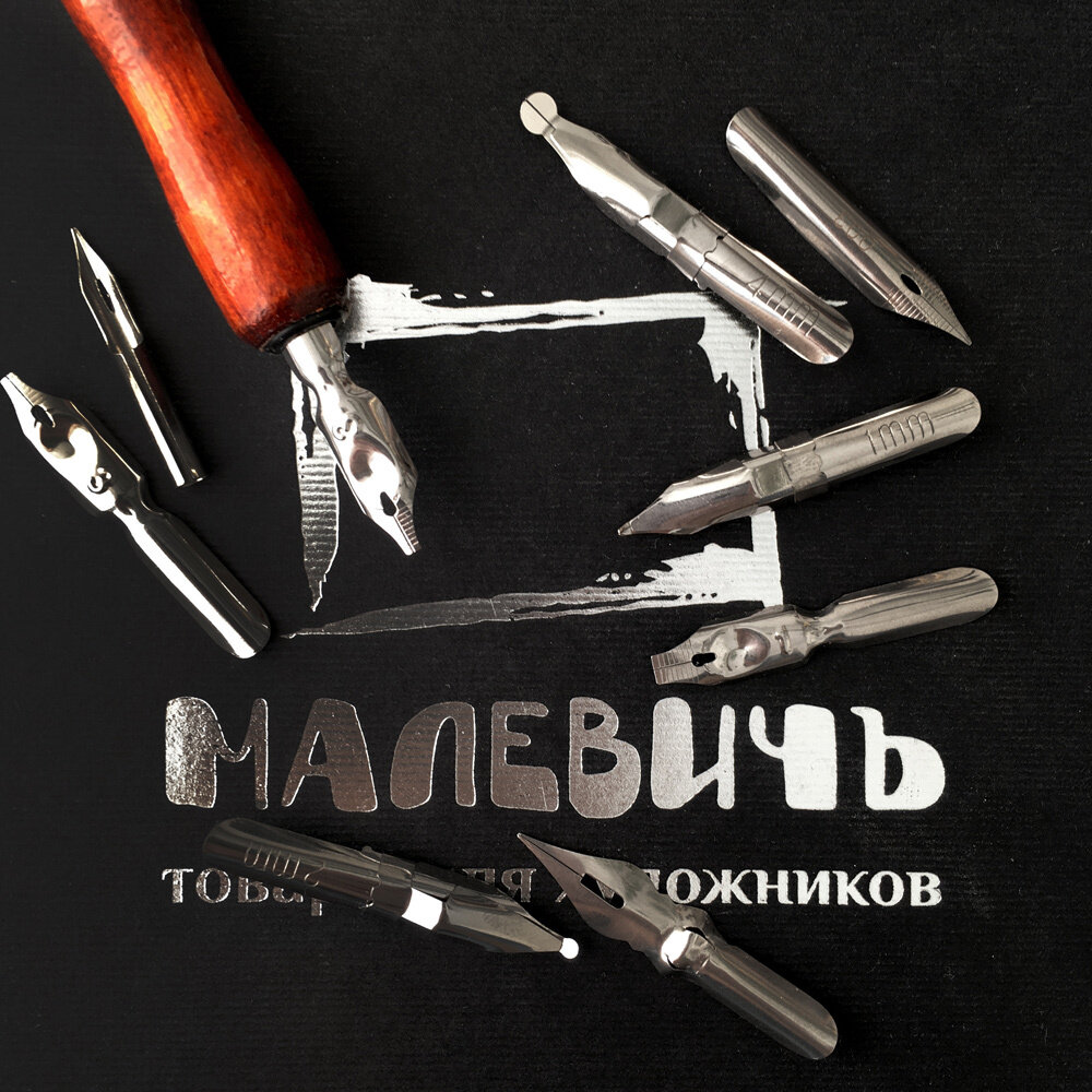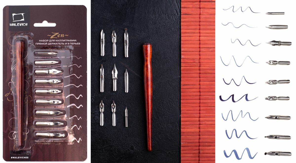 Набор для каллиграфии Малевичъ, 9 перьев с прямым держателем интересное: