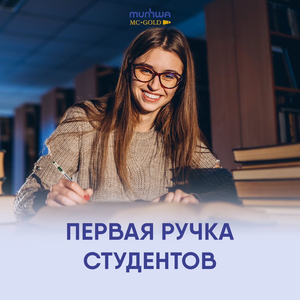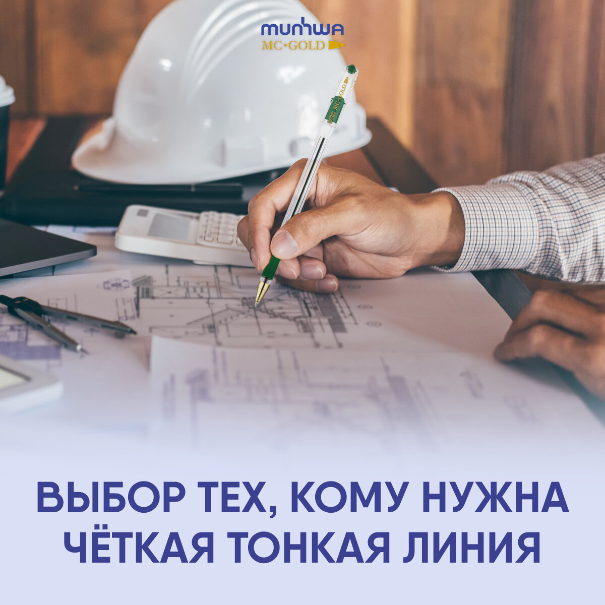 Ручка шариковая MunHwa MC Gold (0.3мм, голубой цвет чернил, масляная основа) 1шт. (BMC-12)