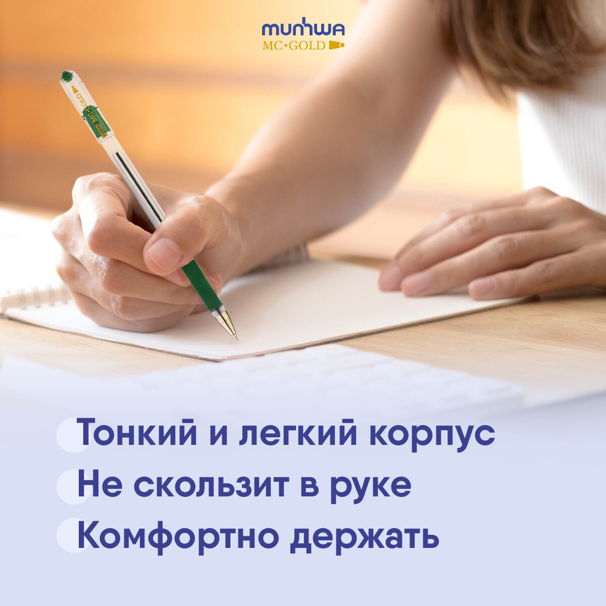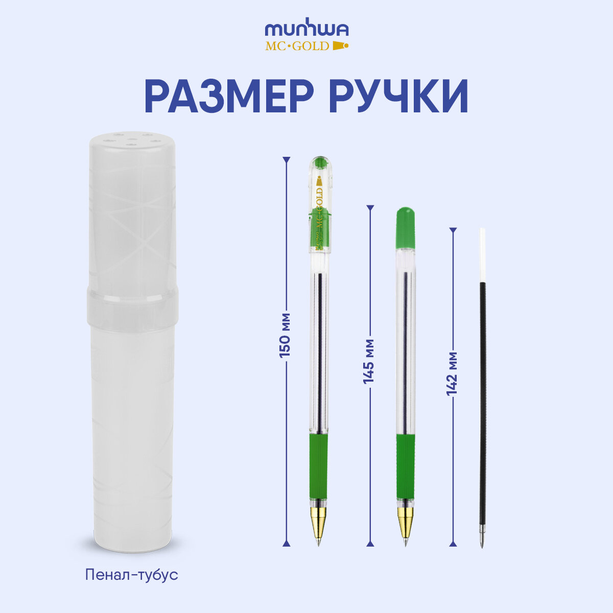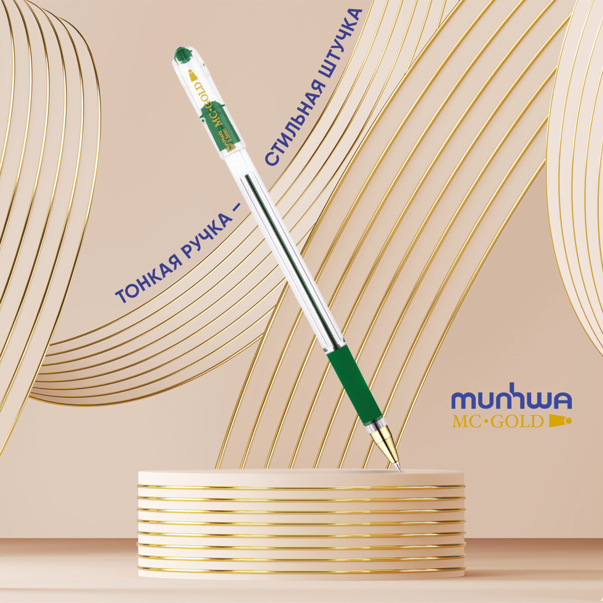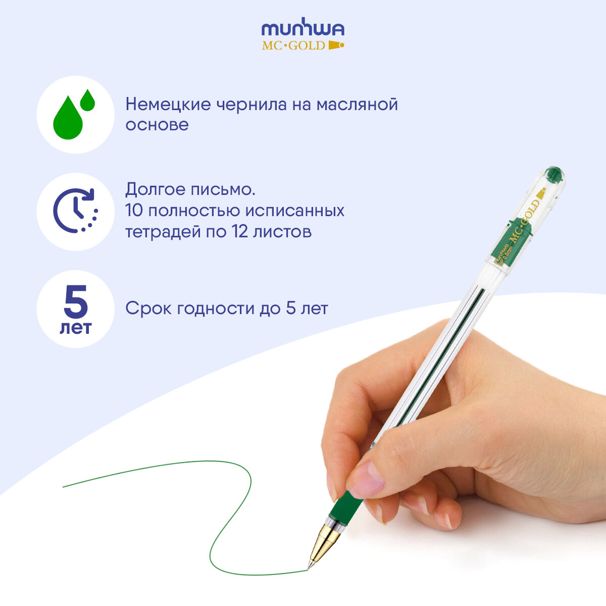 Ручка шариковая MunHwa MC Gold (0.5мм, зеленая, масляная основа), 1шт.