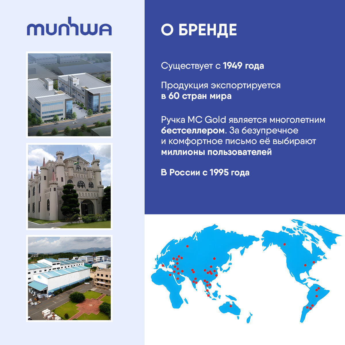 MunHwa Ручка шариковая неавтоматическая MC Gold, синяя, 0,5 мм, 6 шт