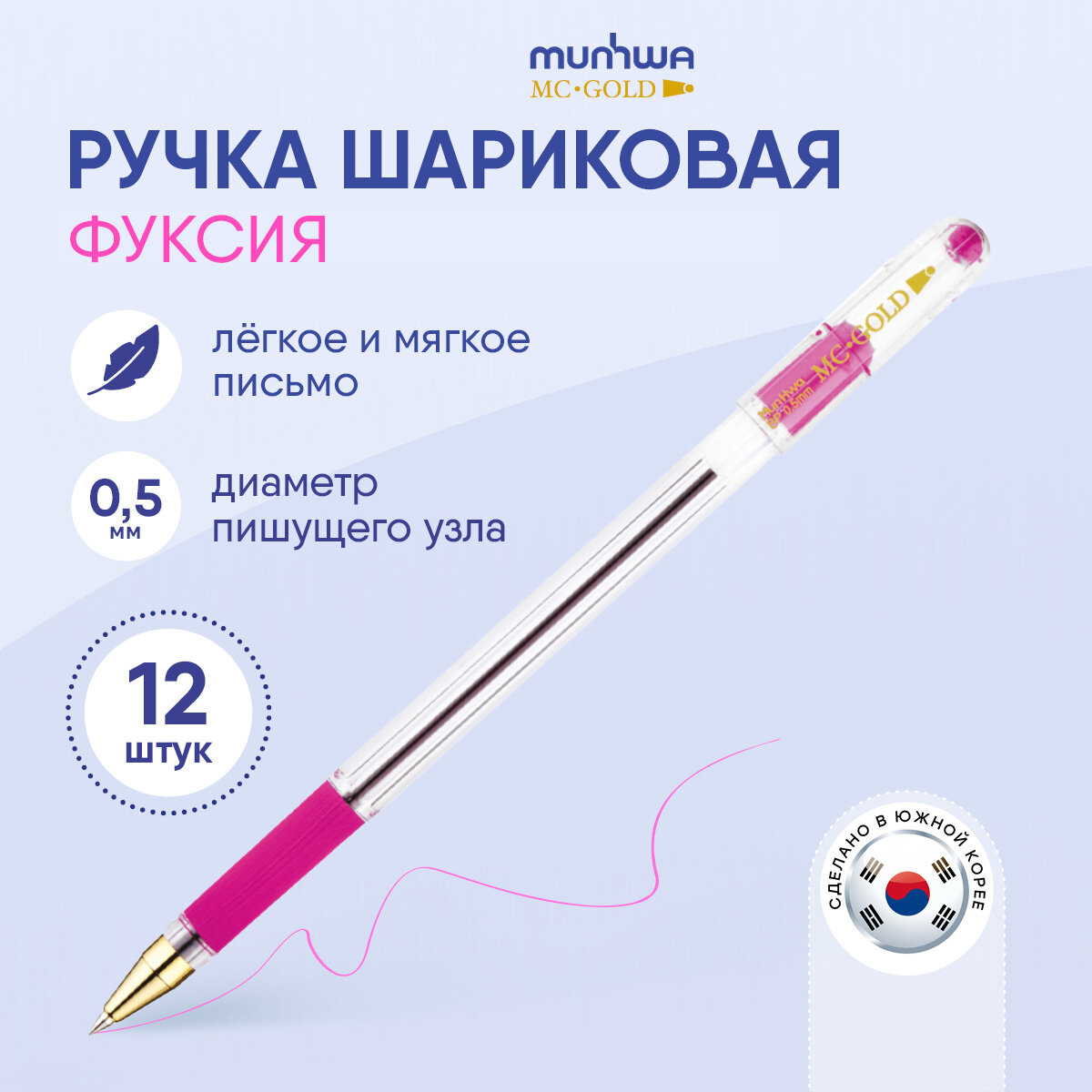 Купить Ручка шариковая MunHwa MC Gold (0.3мм, розовый цвет чернил, масляная основа) (BMC-10), 12шт.