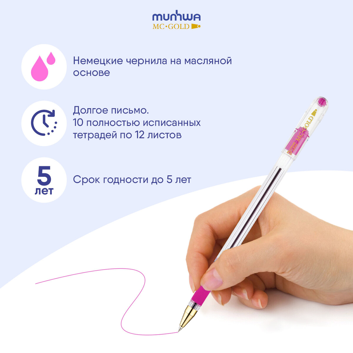СохранитьРучка шариковая MunHwa MC Gold (0.3мм, розовый цвет чернил, масляная основа) (BMC-10), 12шт. интересное: