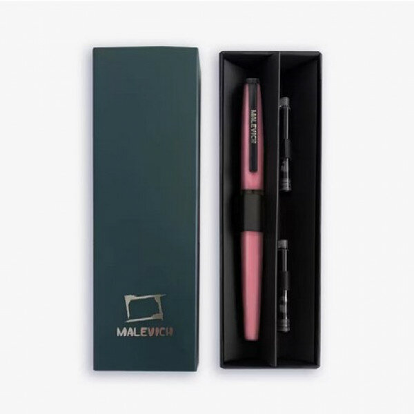 Ручка перьевая Малевичъ с конвертером, перо EF 0,4 мм, набор с двумя картриджами (индиго, черный), цвет корпуса: розовый