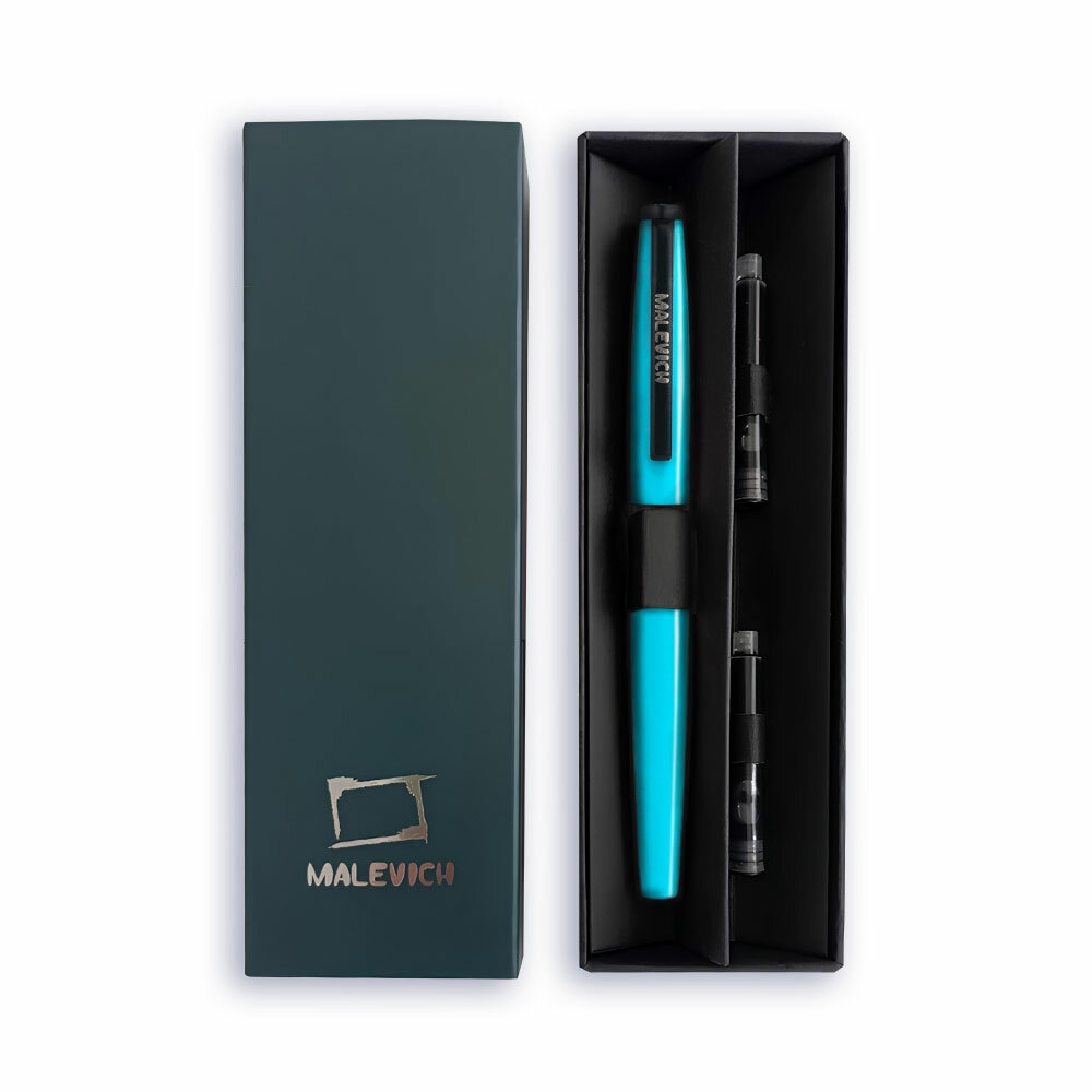 Купить Ручка перьевая Малевичъ с конвертером, перо EF 0,4 мм, набор с двумя картриджами (индиго, черный), цвет корпуса: бирюзовый