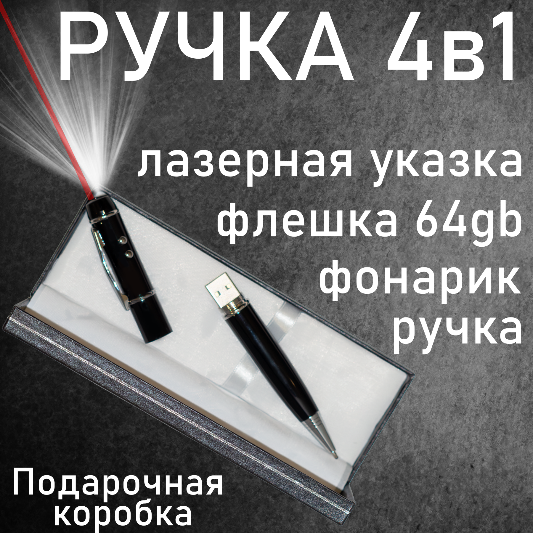 Ручка шариковая флешка 64gb,лазерная указка,фонарик в подарочной упаковке футляре черная интересное: