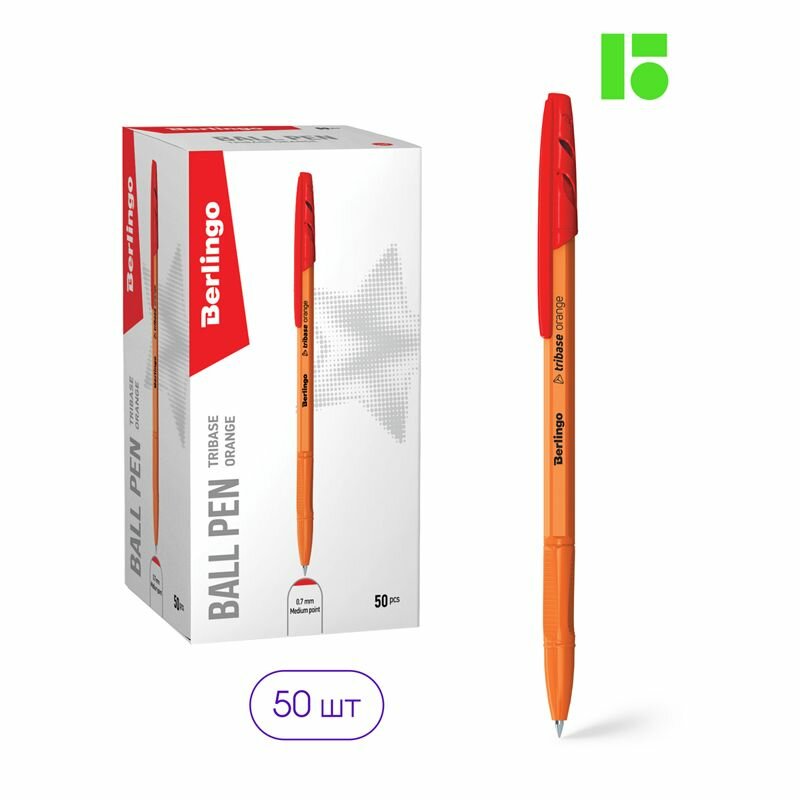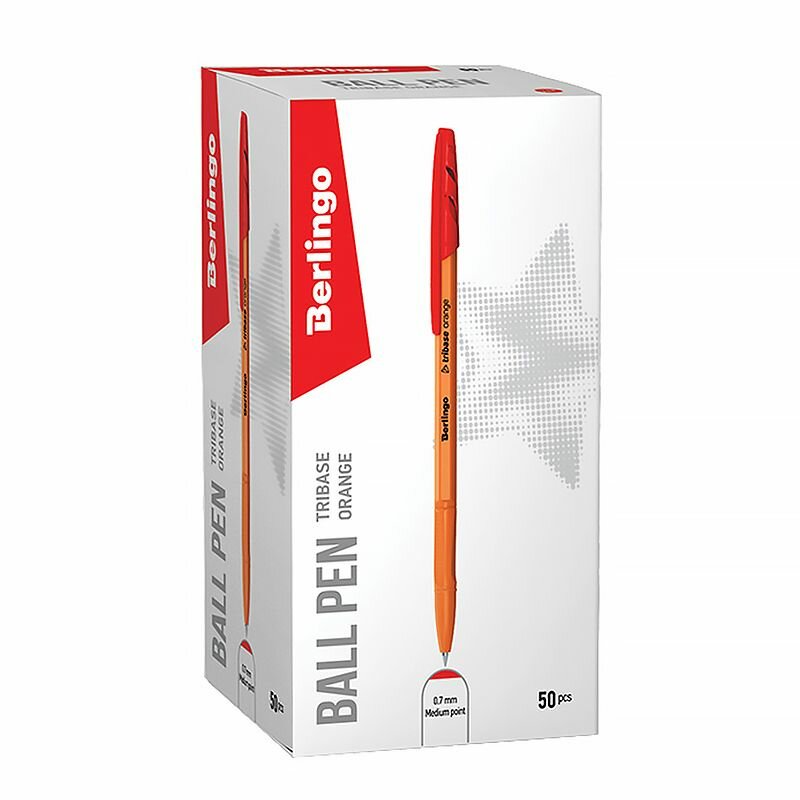 Купить Комплект 50 шт, Ручка шариковая Berlingo "Tribase Orange" красная, 0.7мм