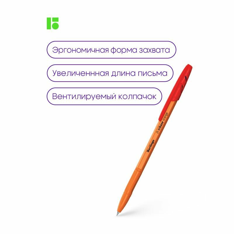 СохранитьКомплект 50 шт, Ручка шариковая Berlingo "Tribase Orange" красная, 0.7мм интересное: