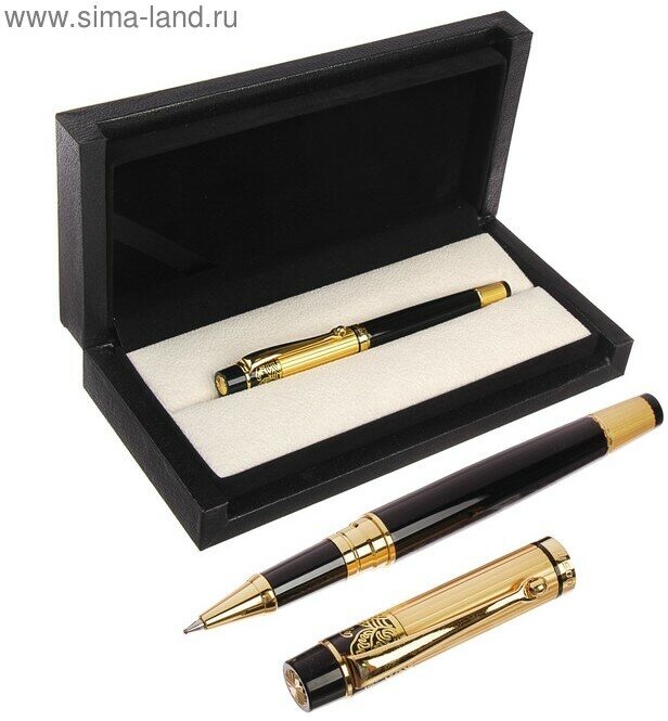 Ручка подарочная гелевая Calligrata, футляр из искусственной кожи, чёрно-золотистый корпус интересное: